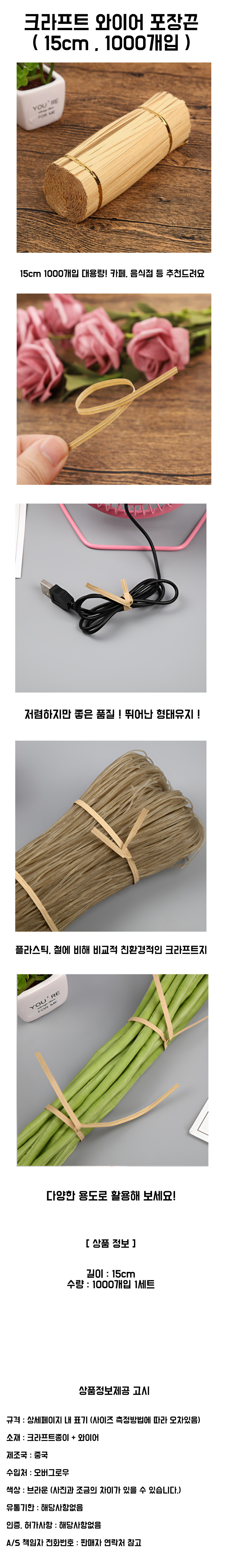 크라프트 와이어 포장끈 15cm 1000개입 선물포장끈 빵끈 종이끈