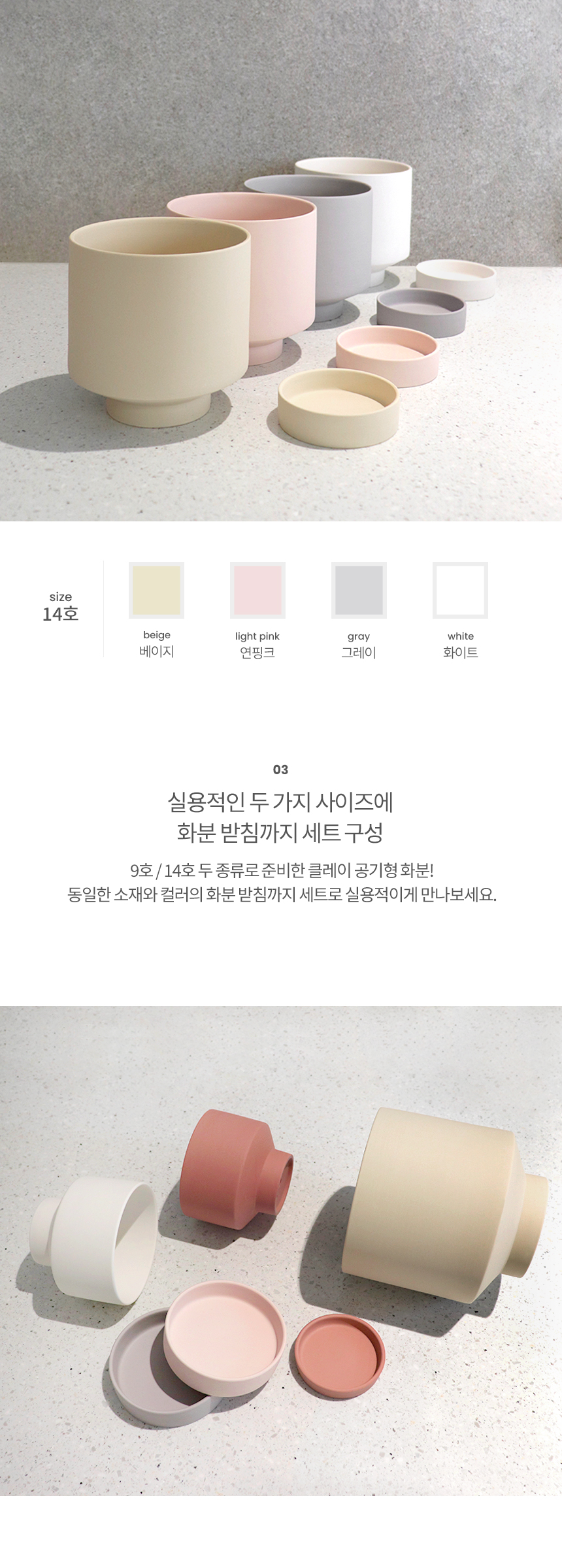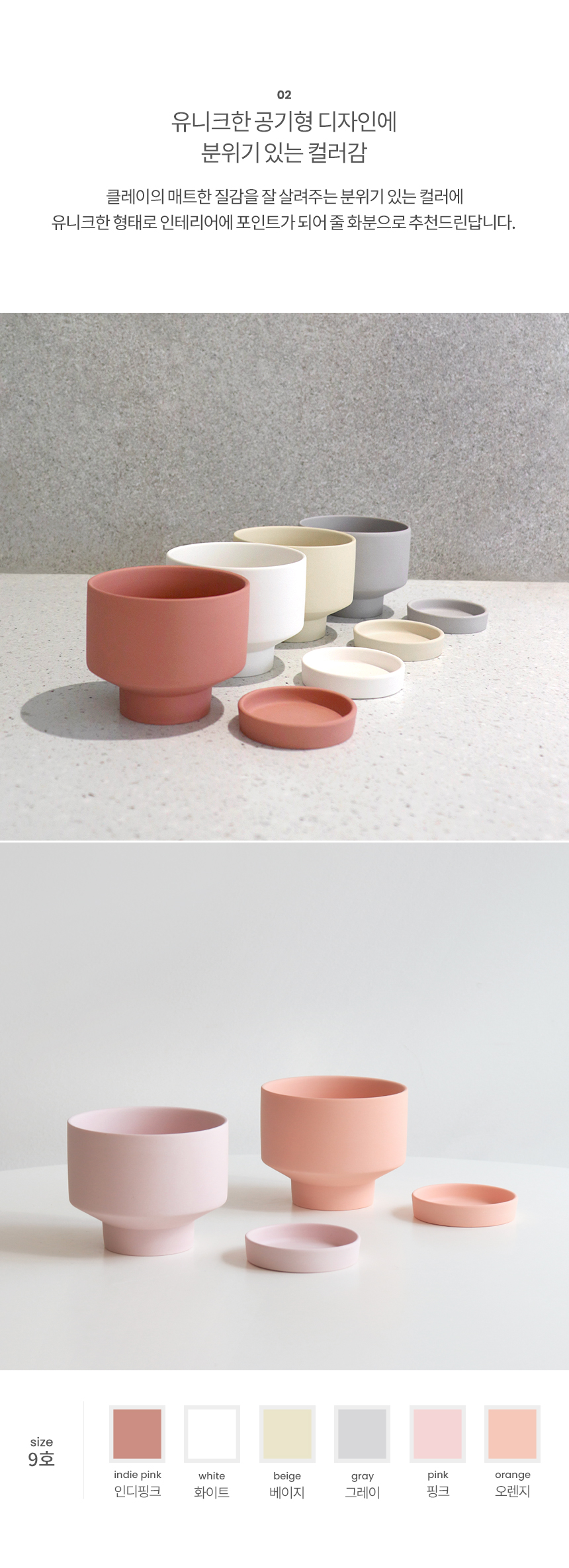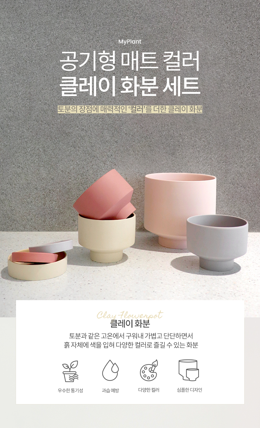 공기형 매트 컬러 클레이화분 (받침세트)
