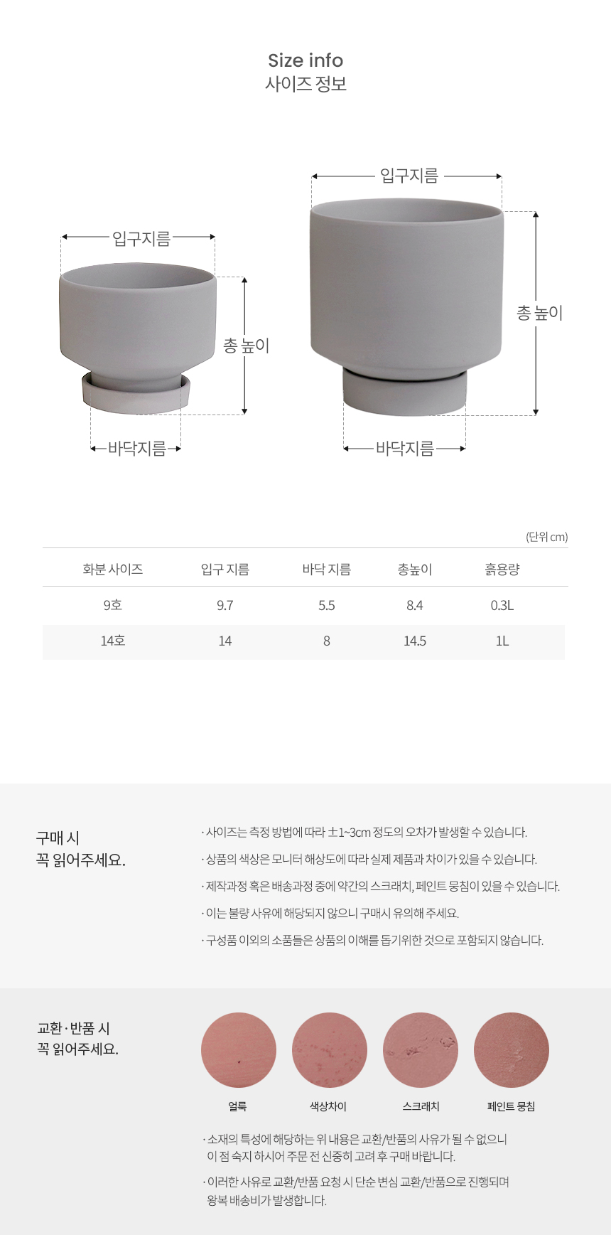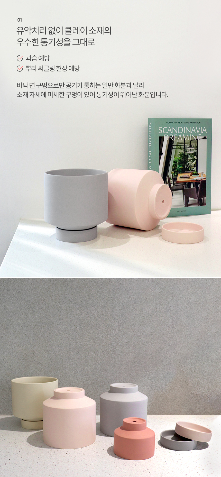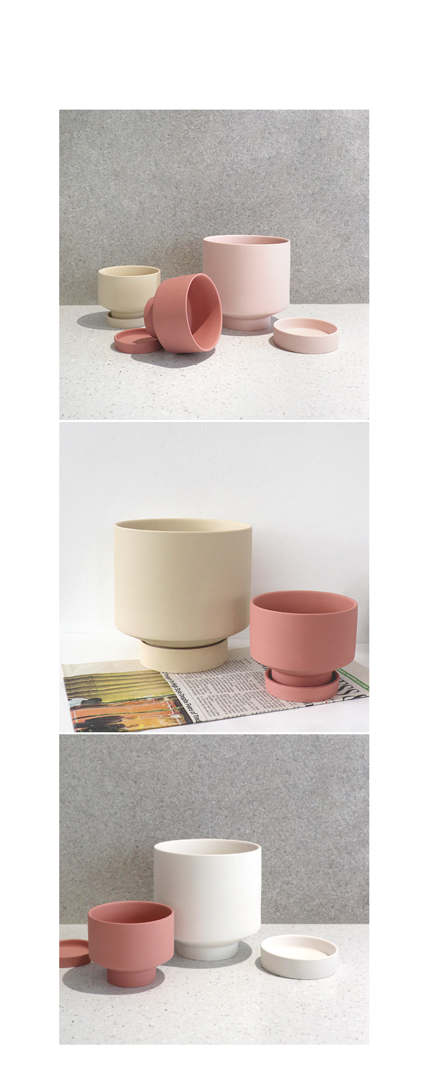공기형 매트 컬러 클레이화분 (받침세트)