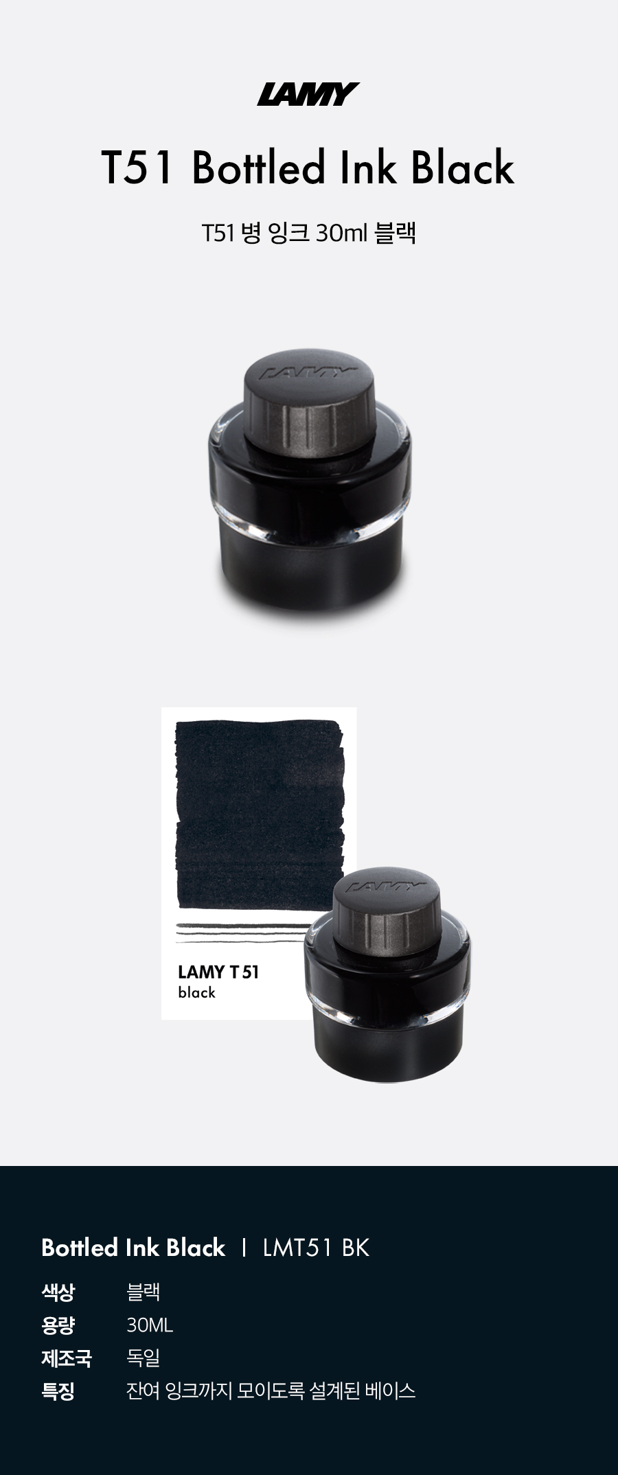 라미 만년필용 병잉크 T51 블랙 30ml (1개입)
