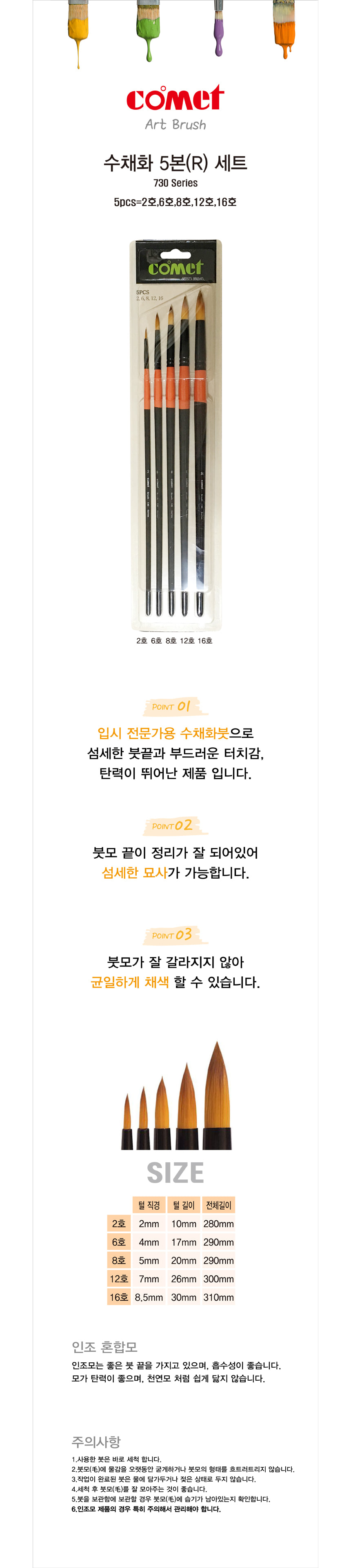 칠성당 코매트 수채화붓 730 5본세트 미술용품