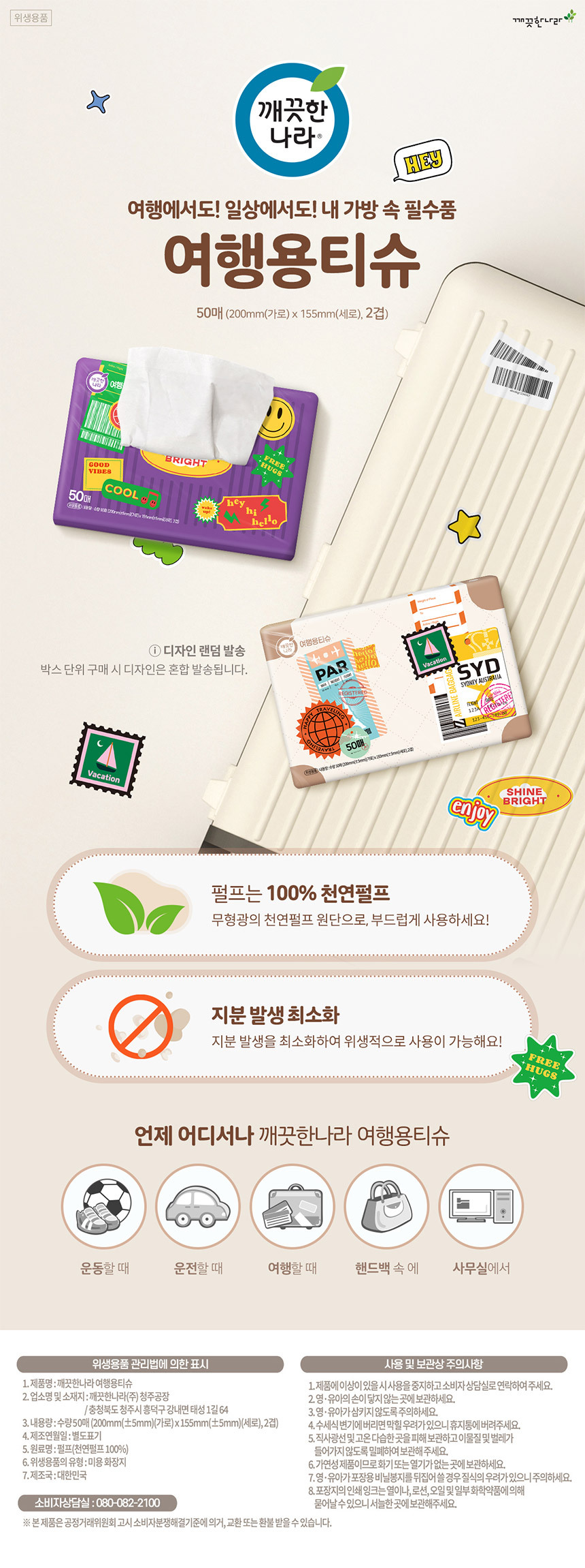 (깨끗한나라) 여행용티슈 50장입 화장지 (20개입)