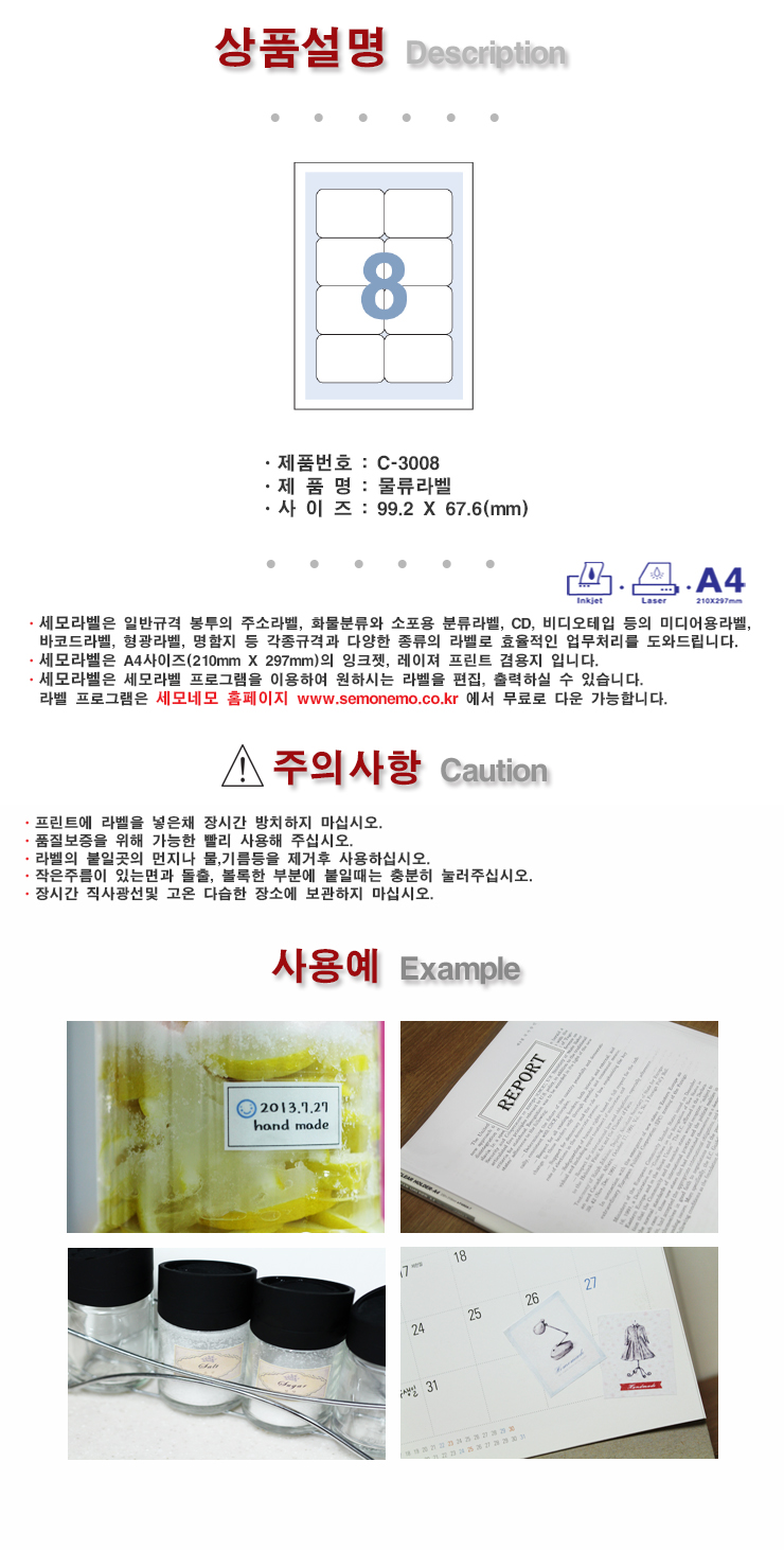 세모네모 박스 전산라벨 C3008 8칸 99.2x67.6mm
