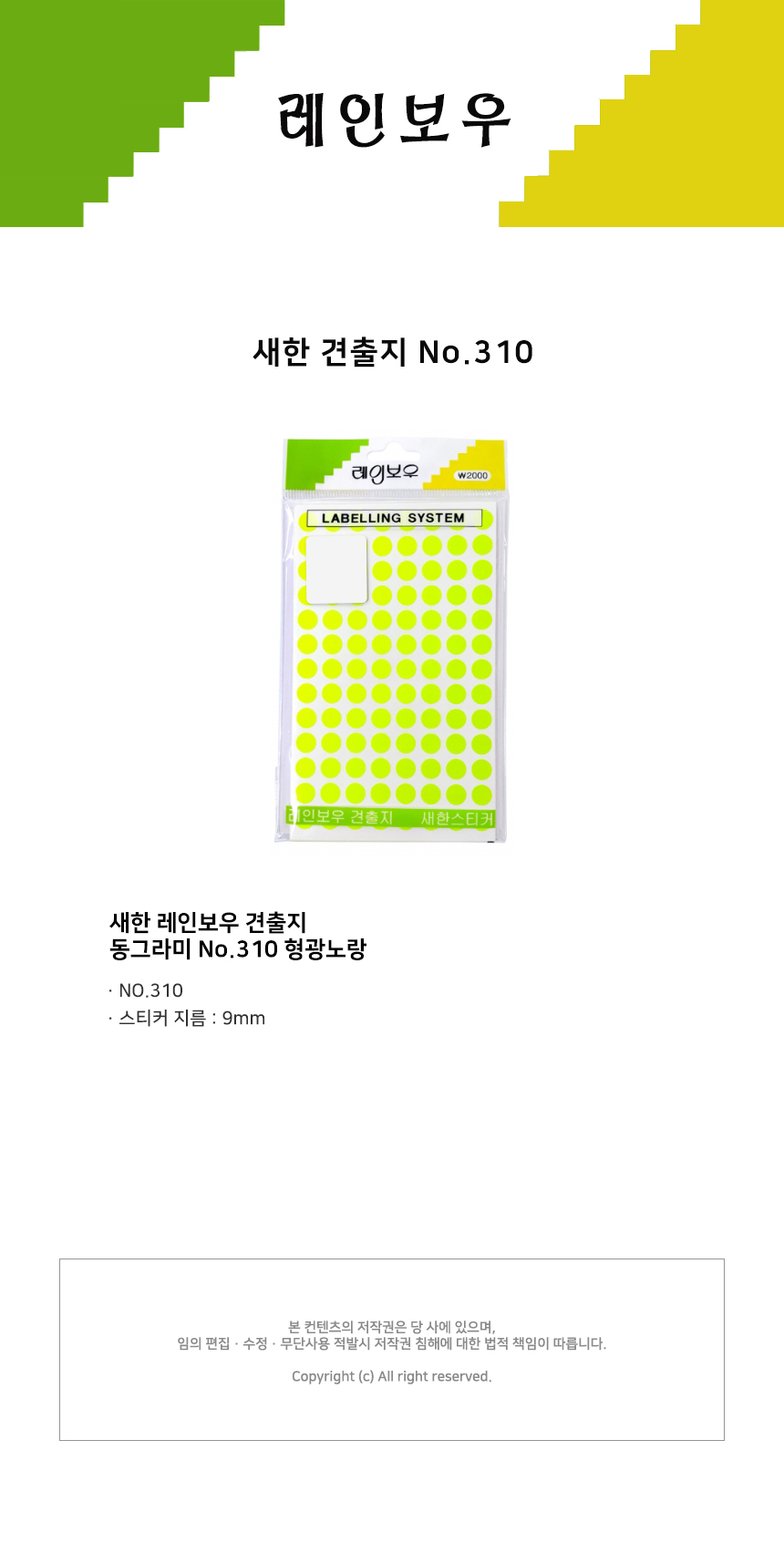 새한 레인보우견출지 형광 원형 NO.310(노) 10장 1040