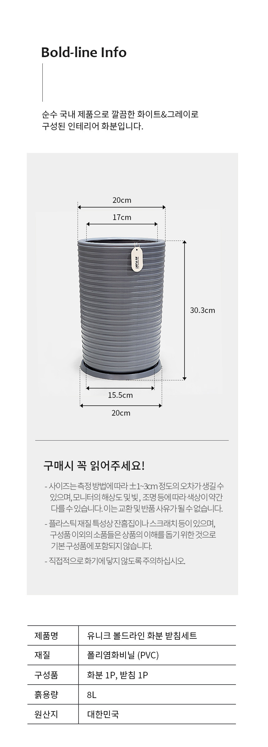 유니크 볼드라인 화분 받침세트 20호
