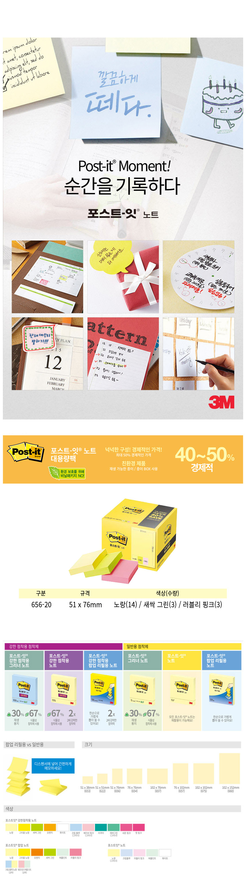 3M 포스트잇 대용량팩 일반 656-20 점착식 메모지