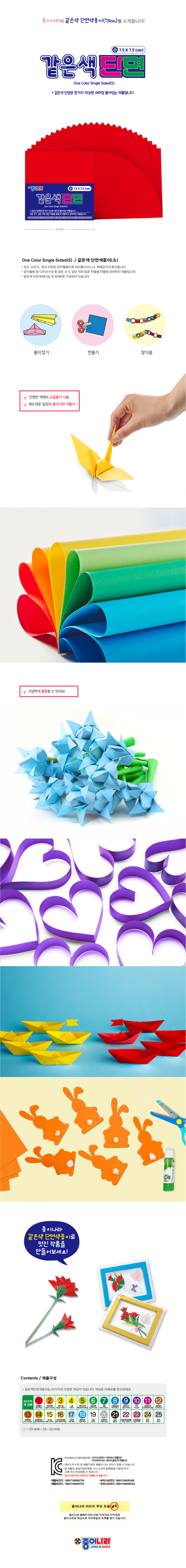 종이나라 2000 같은색단면색종이 소 01 밝은빨강 90매