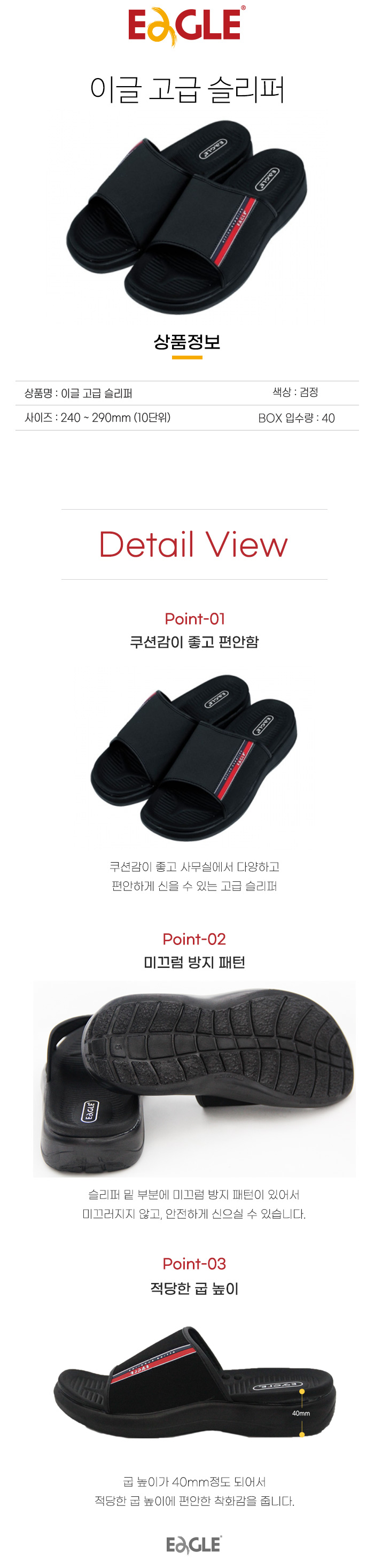 이글 고급 폴로 슬리퍼/실내화 290mm 쿠션실내화