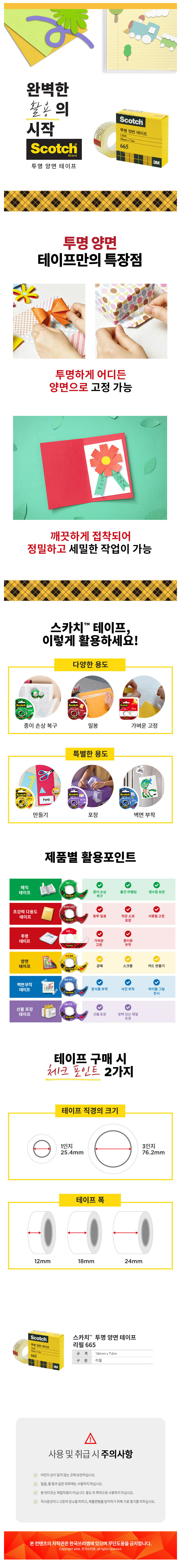 3M 스카치 투명양면테이프 리필 665R-6 18mm 오피스팩
