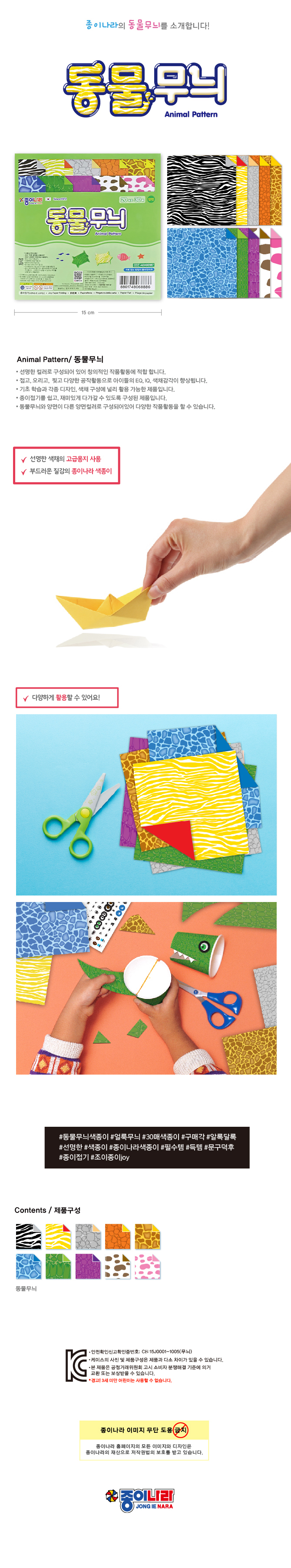 종이나라 2000 동물무늬 양면색종이 20색 30매