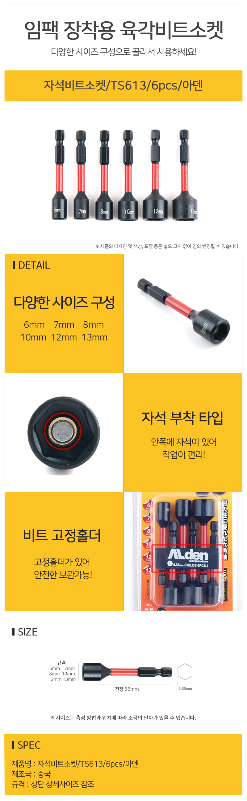 자석비트소켓 TS613 6pcs 알덴