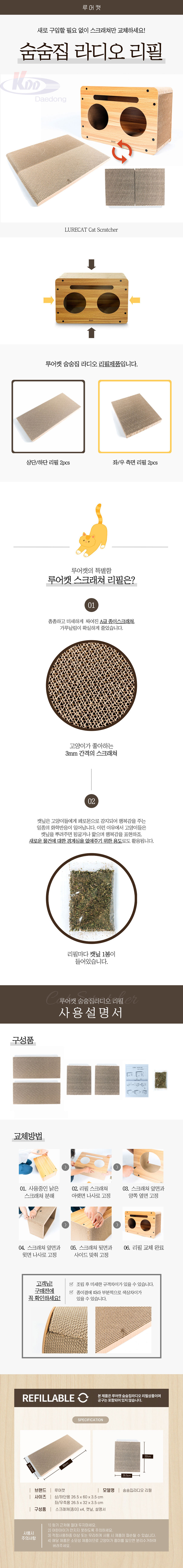 루어캣 스크래처 숨숨집 라디오 리필4P(SC-348BRF)