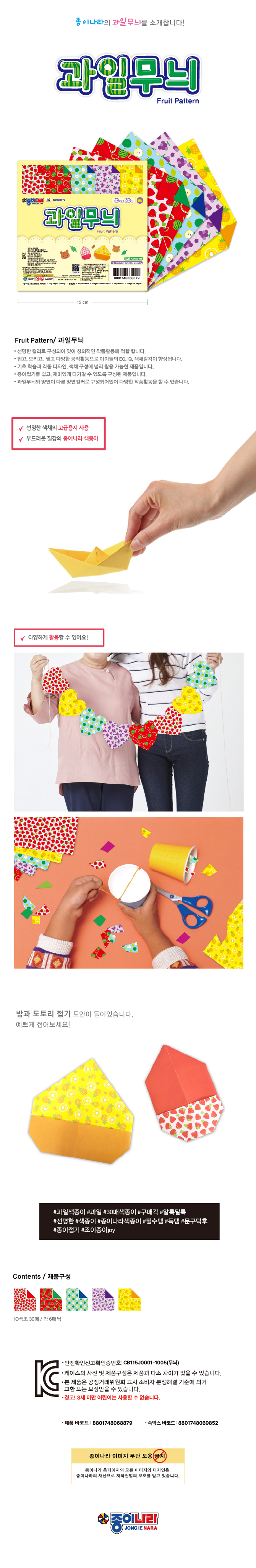 종이나라 과일무늬 양면색종이 10색 30매 종이접기