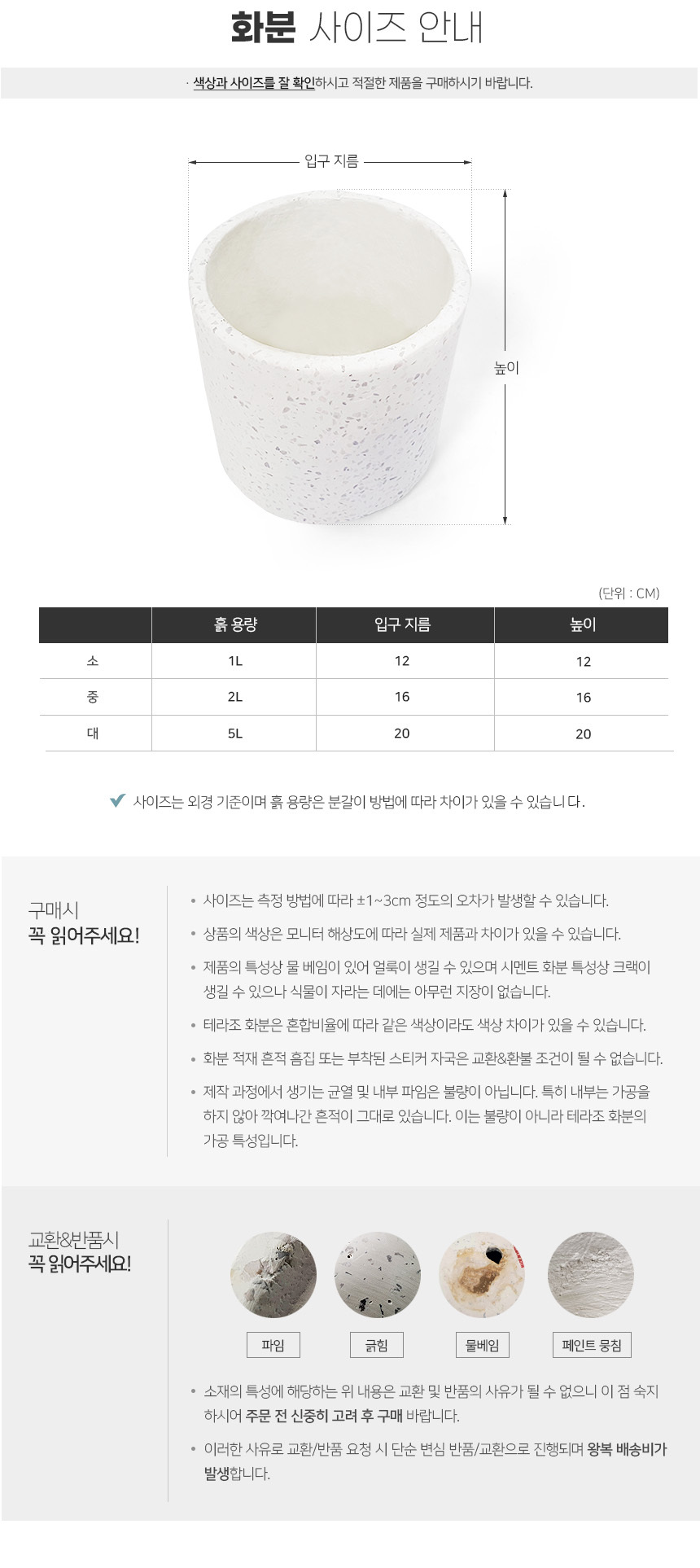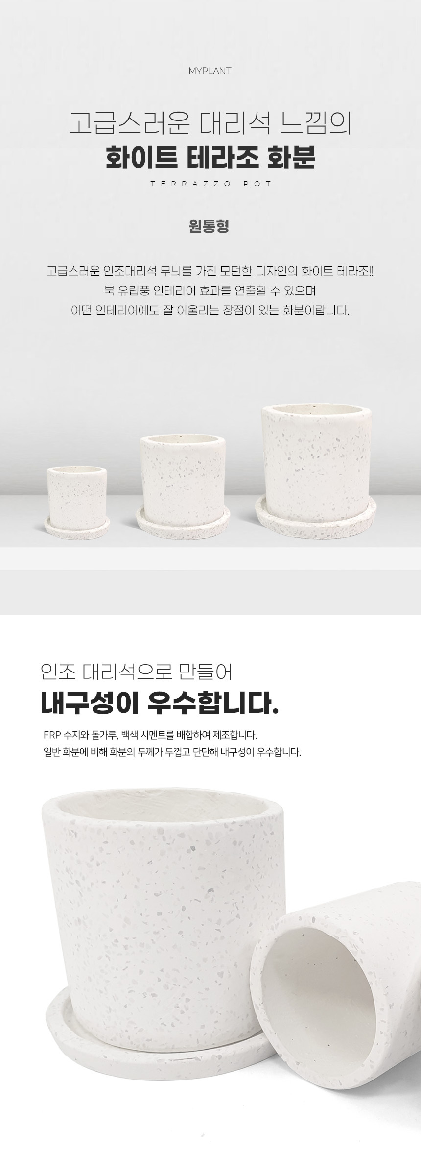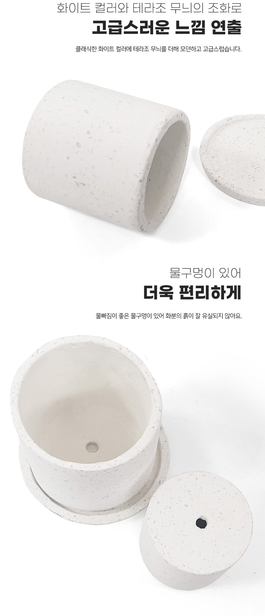 화이트 테라조 화분 (원통형 / 받침세트)