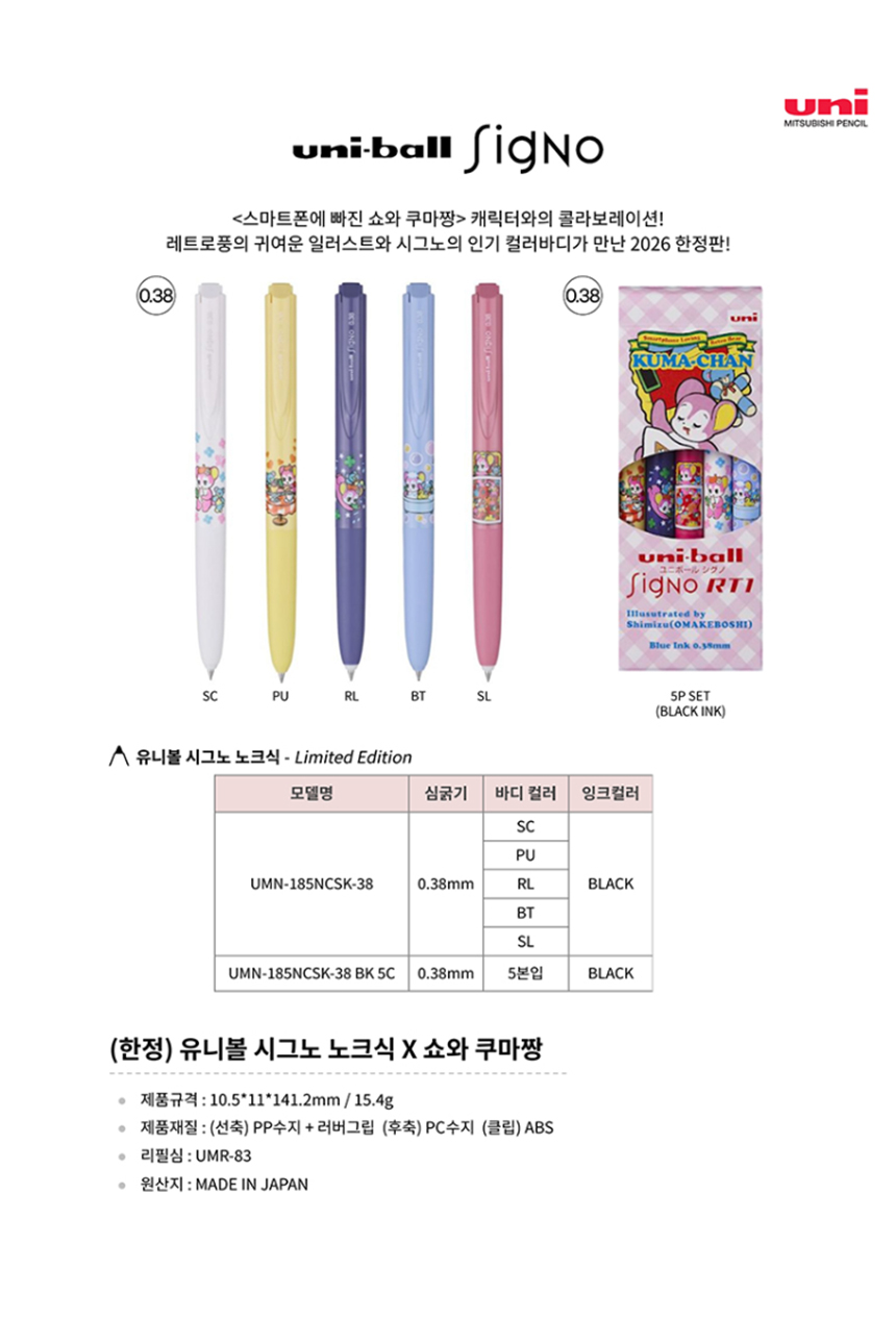 [유니] 시그노노크식볼펜 UMN-185NCSK-38 PU 흑색