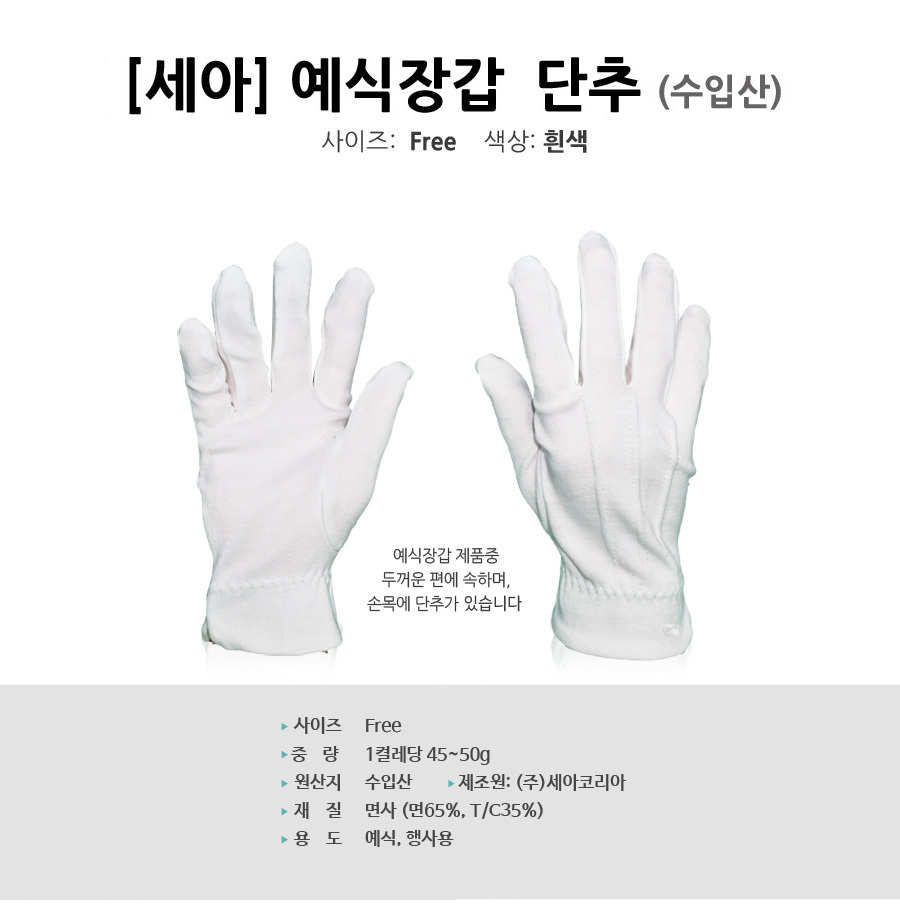 세아코리아 흰장갑 성인 47번 (두꺼운것) (단추O)