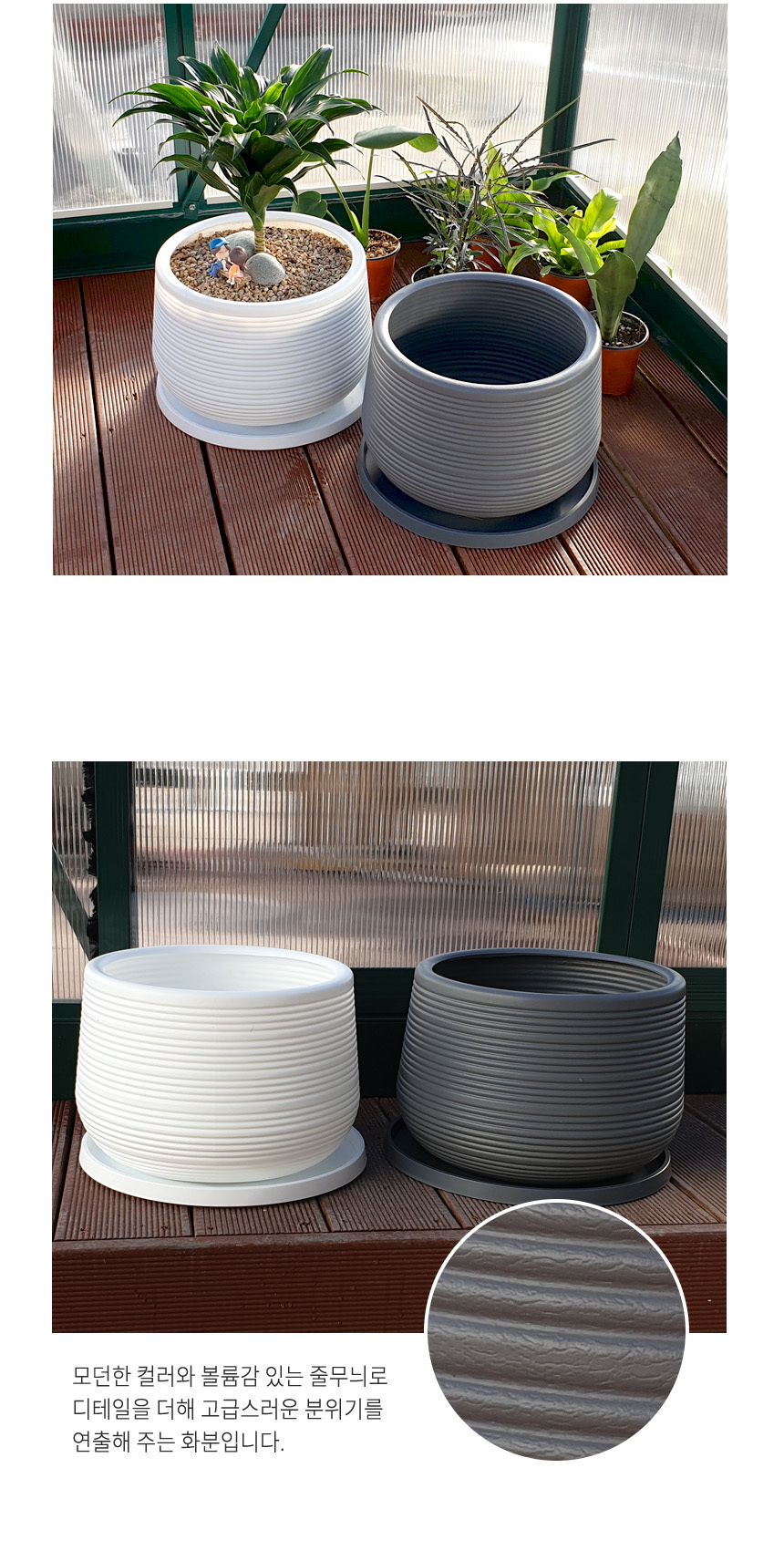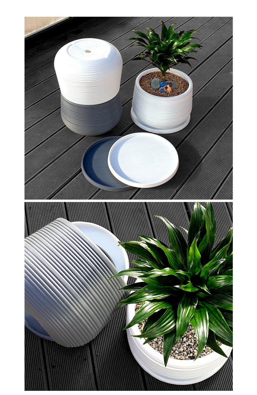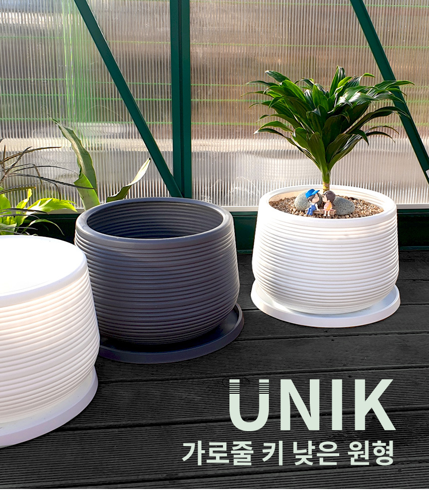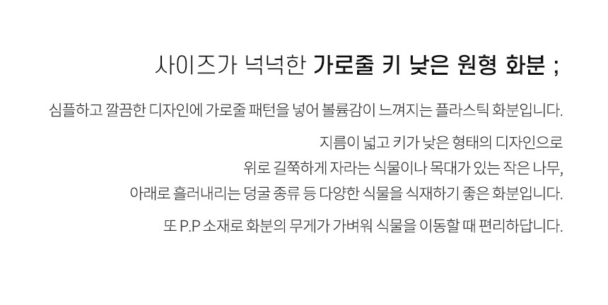 유니크 가로줄 키낮은 원형 화분