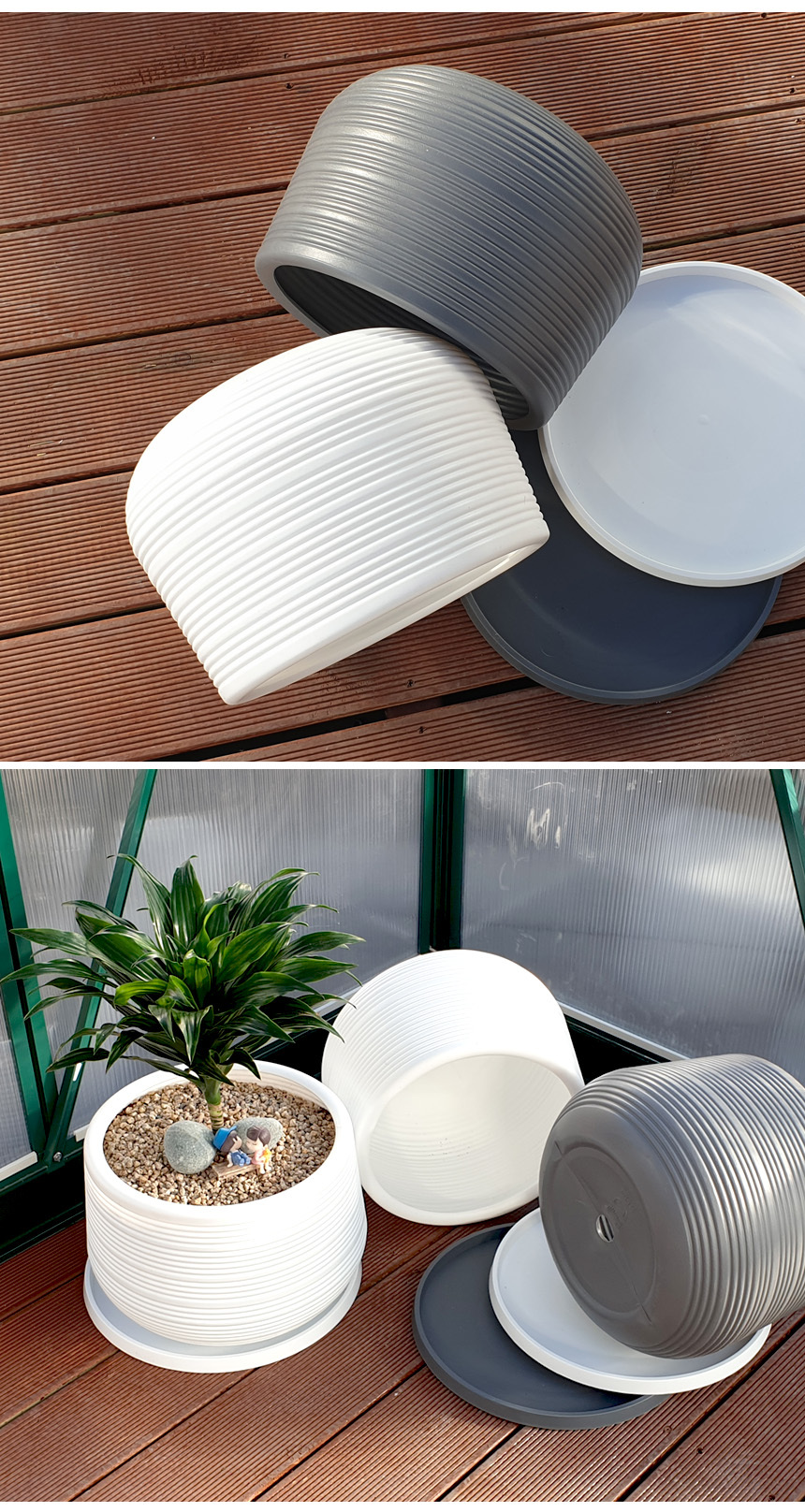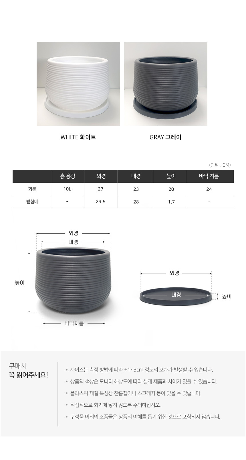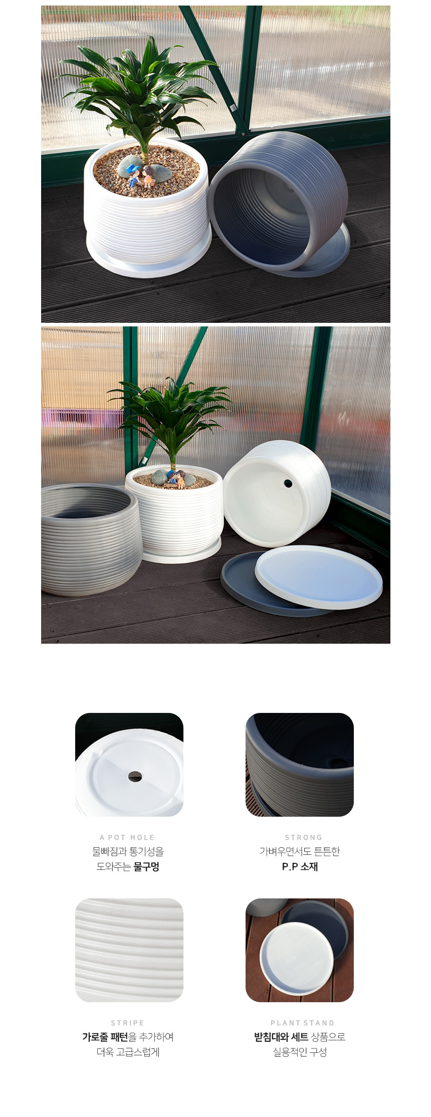 유니크 가로줄 키낮은 원형 화분