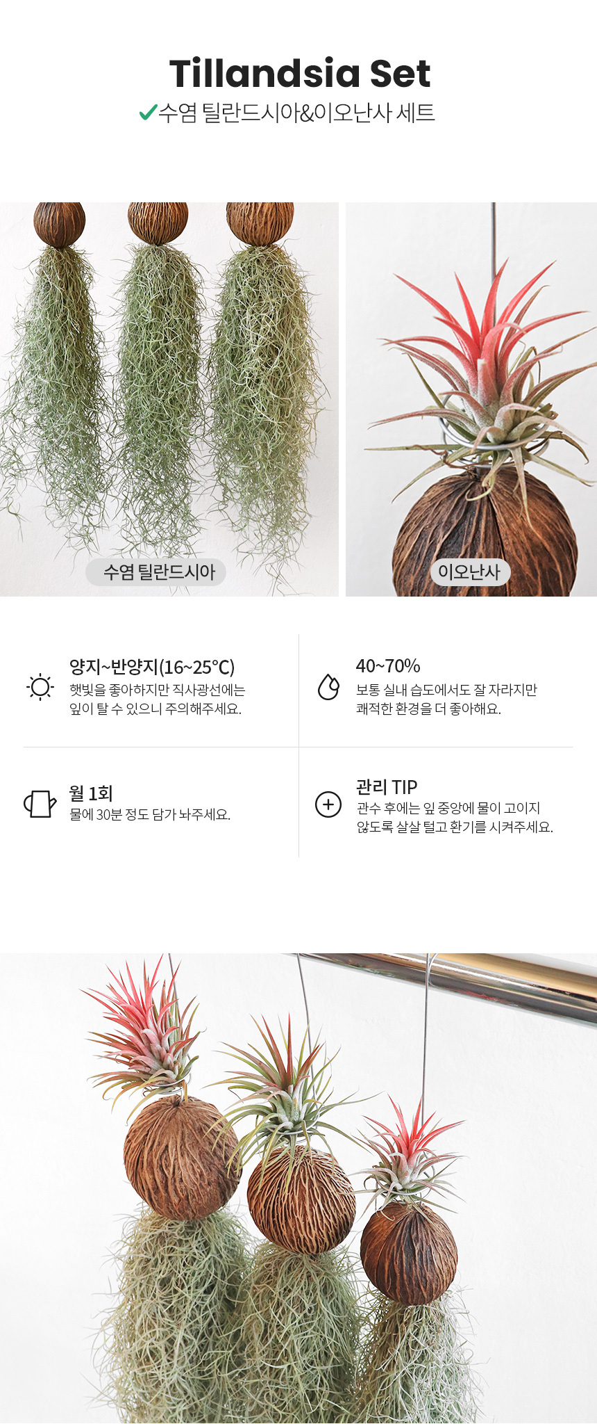 수염 틸란드시아 이오난사 세트(소형/중형/대형)