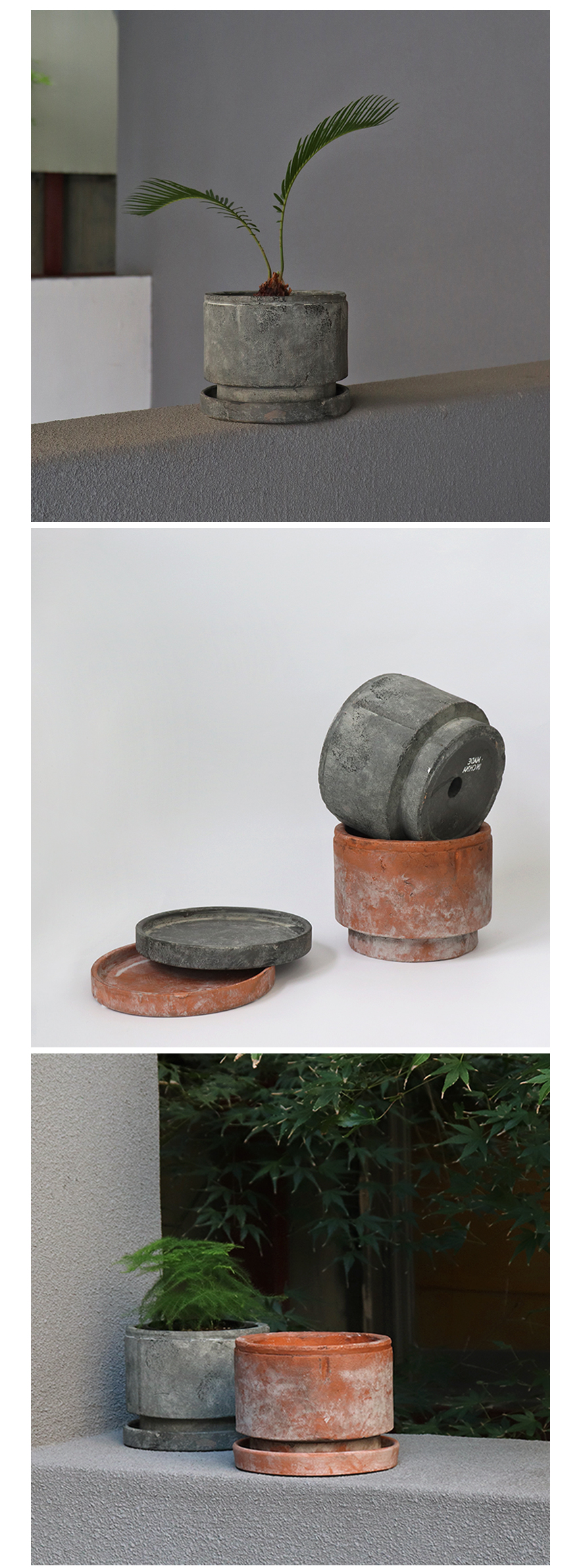 빈티지 토분 그리드 앵글 받침세트