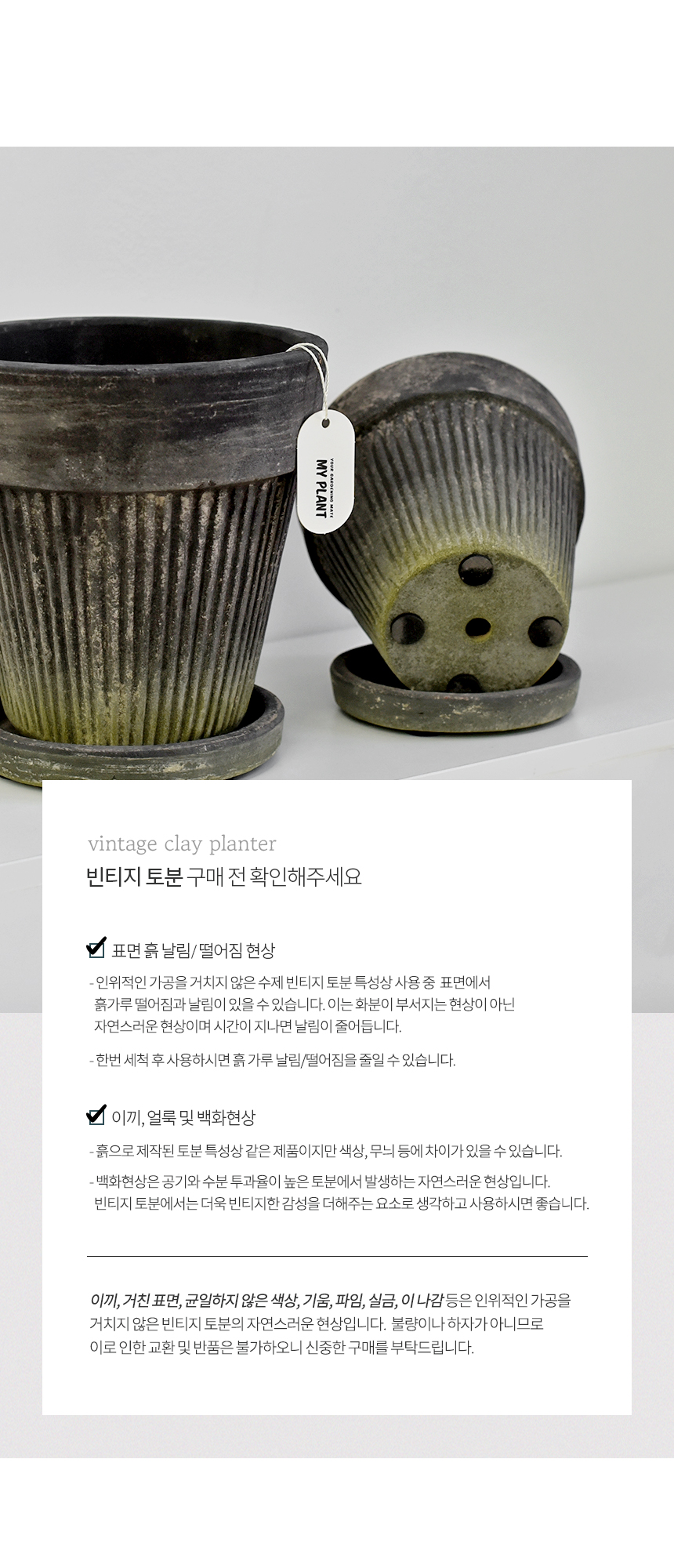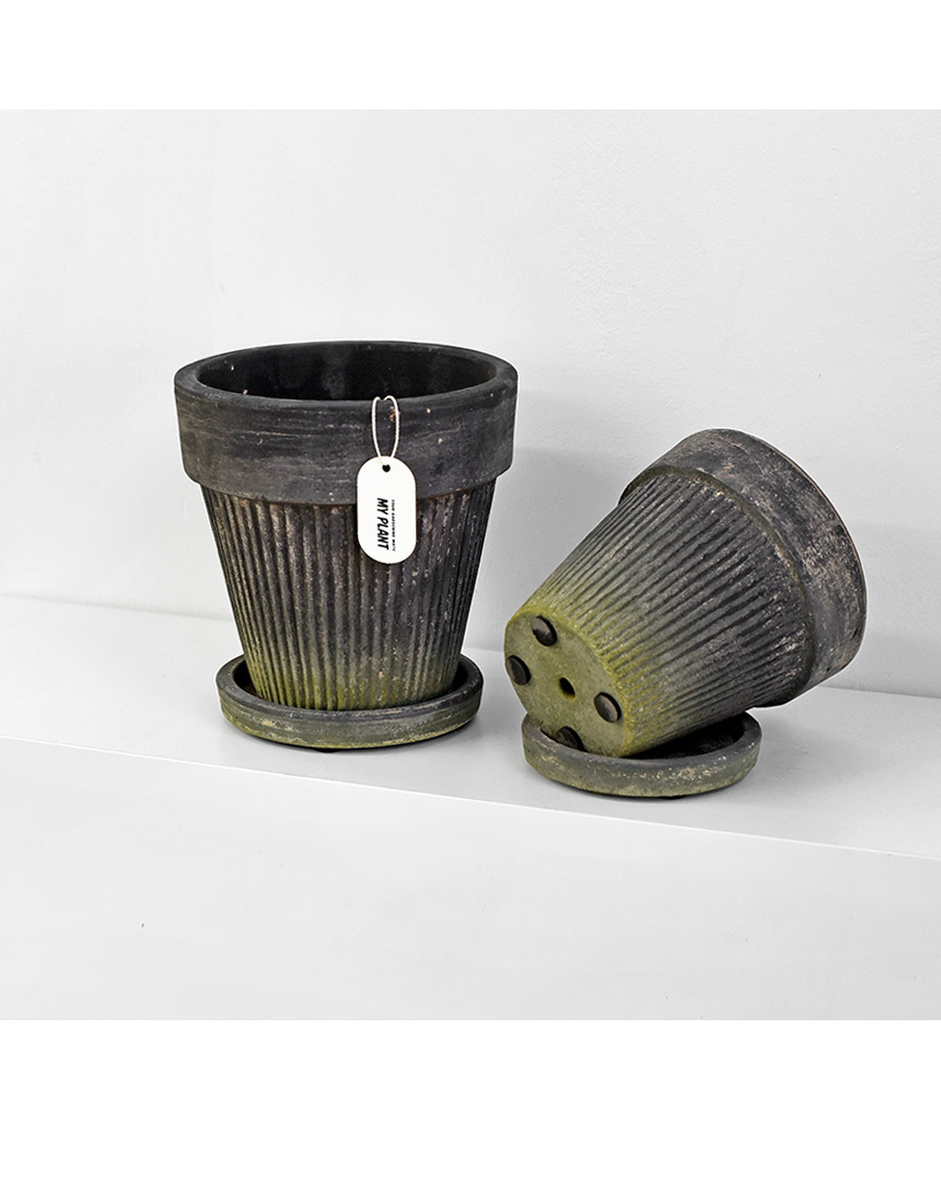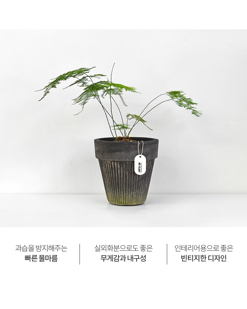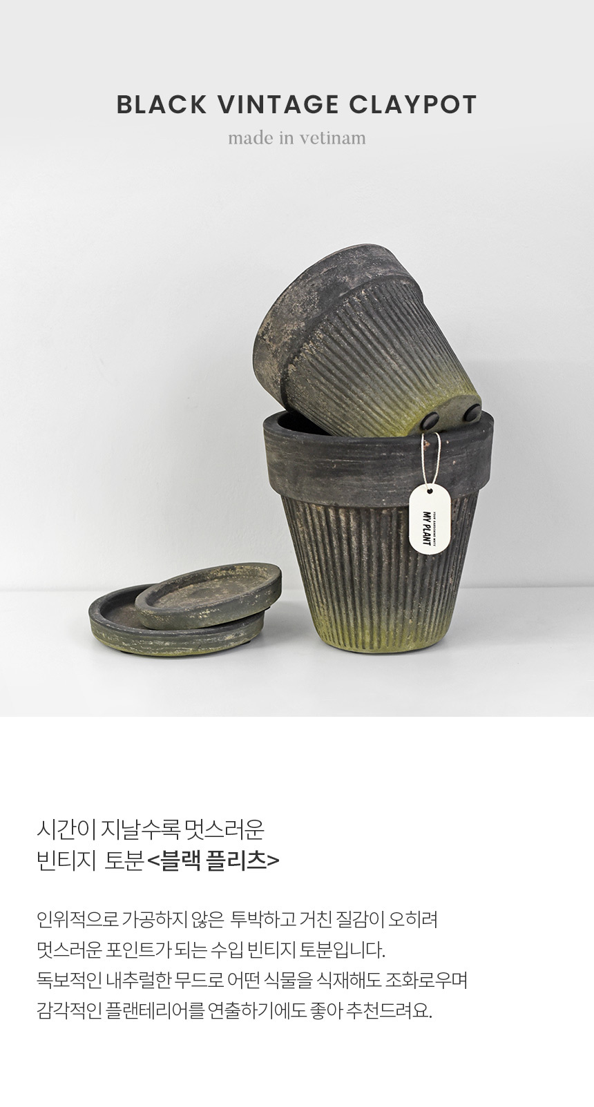 블랙 플리츠팟 빈티지 토분
