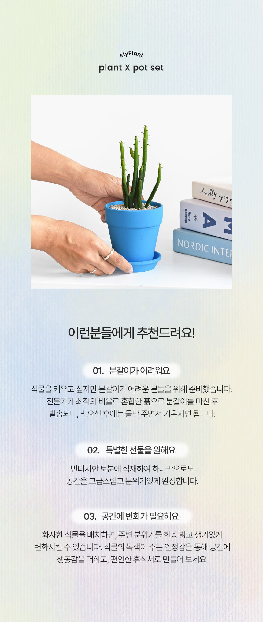 컬러 스탠다드팟 연필선인장 식재 화분 세트