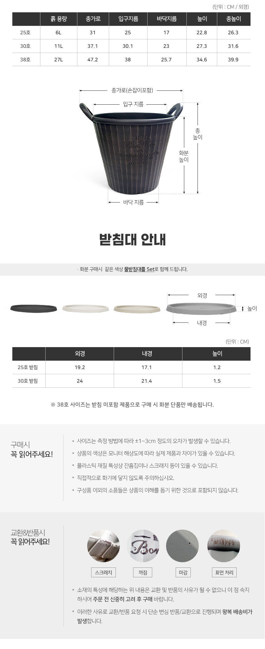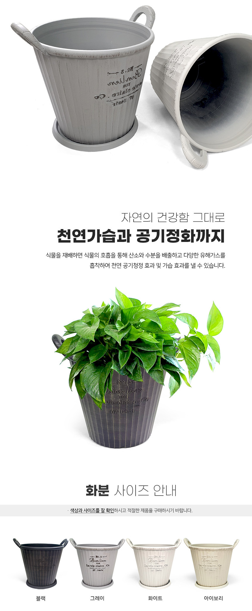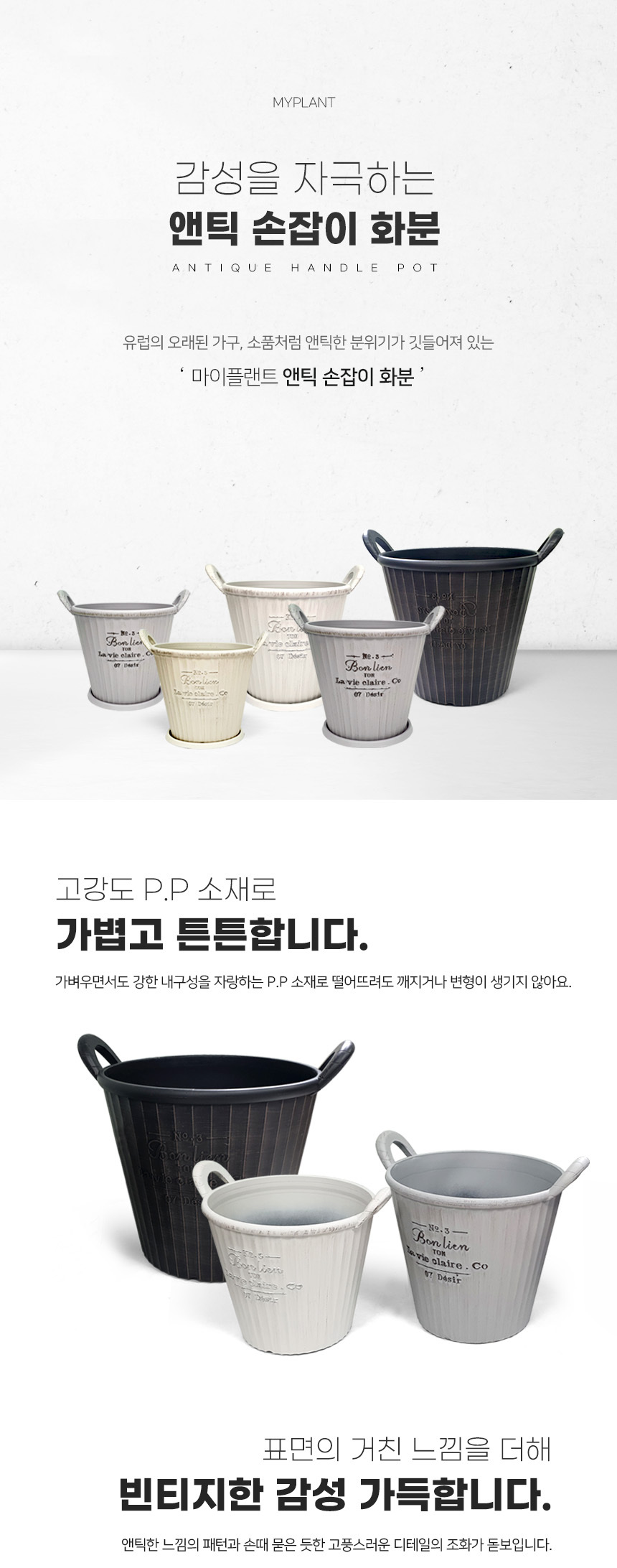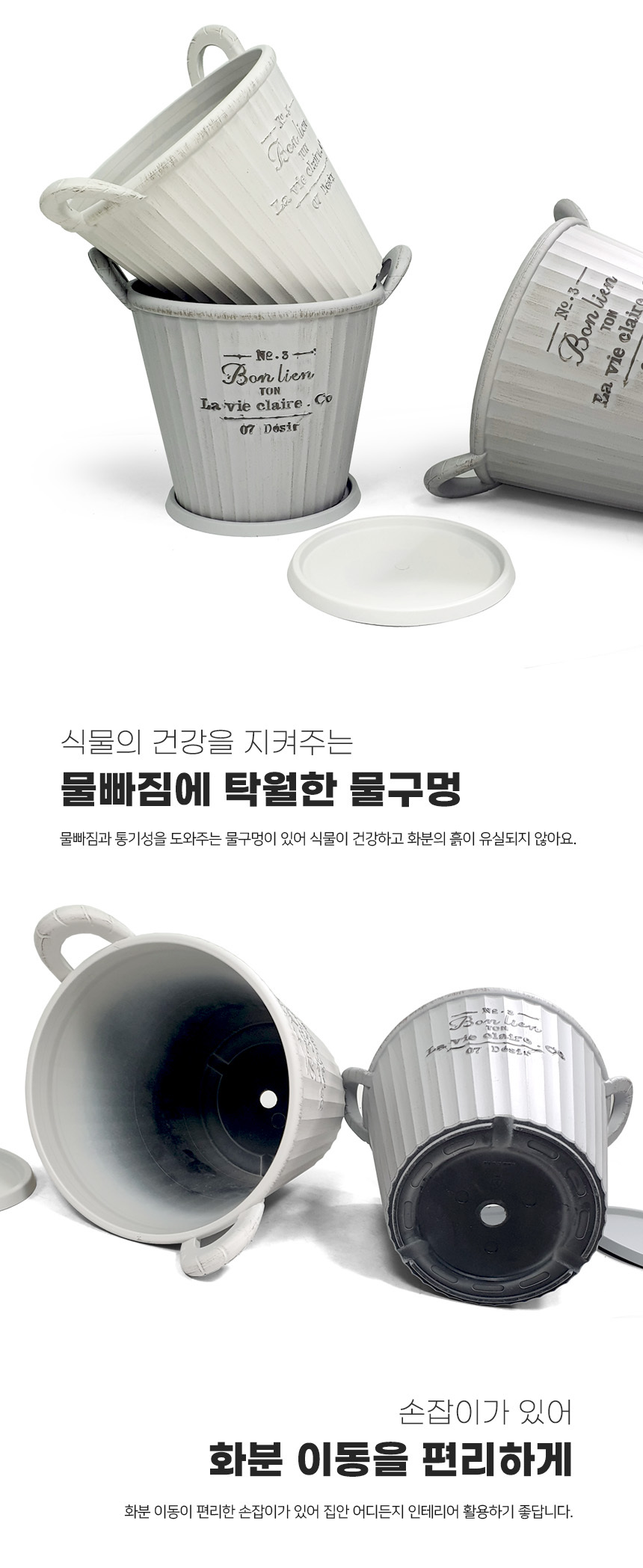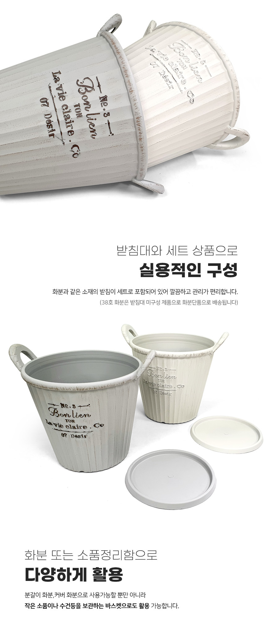 앤틱 손잡이 플라스틱 화분 (받침세트)