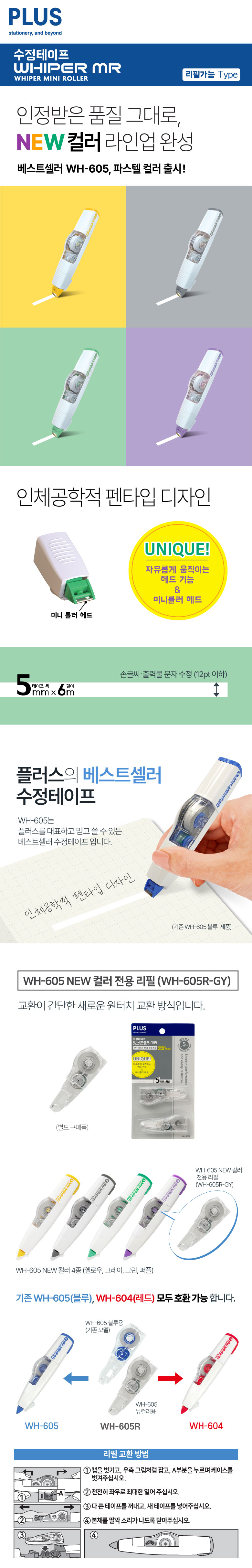 플러스 수정테이프 WH-605-GY / 5mm*6m