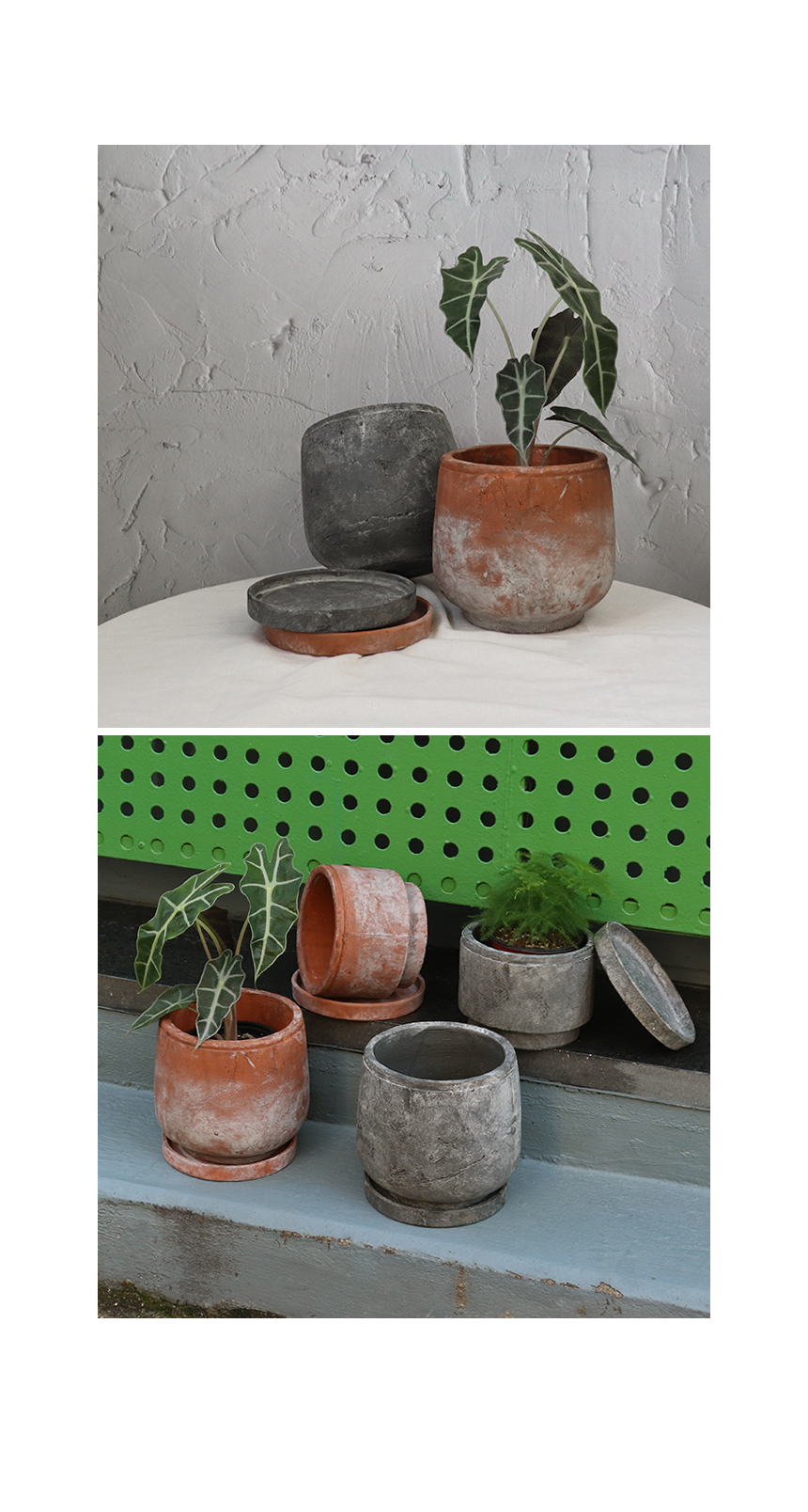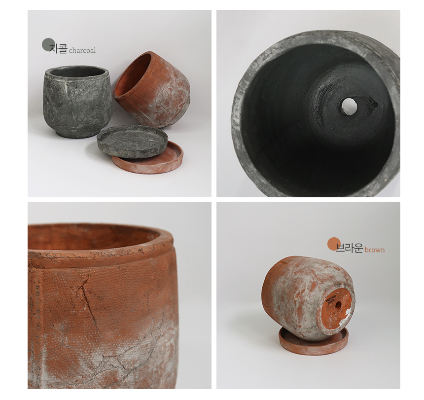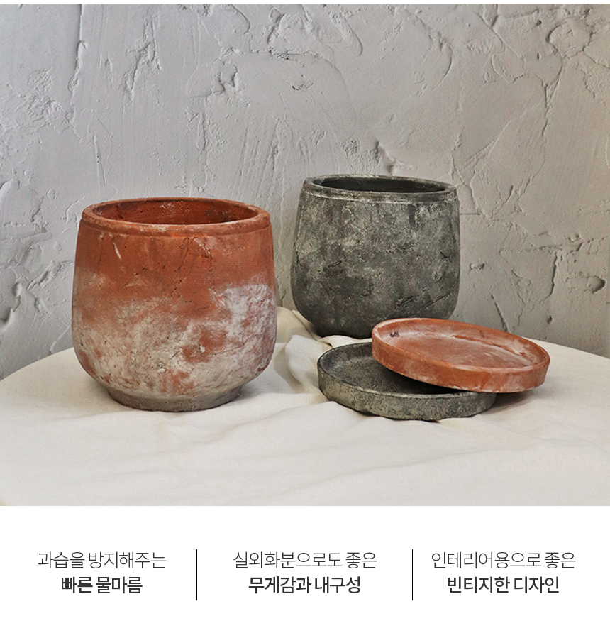 빈티지 토분 그리드 라운드 받침세트