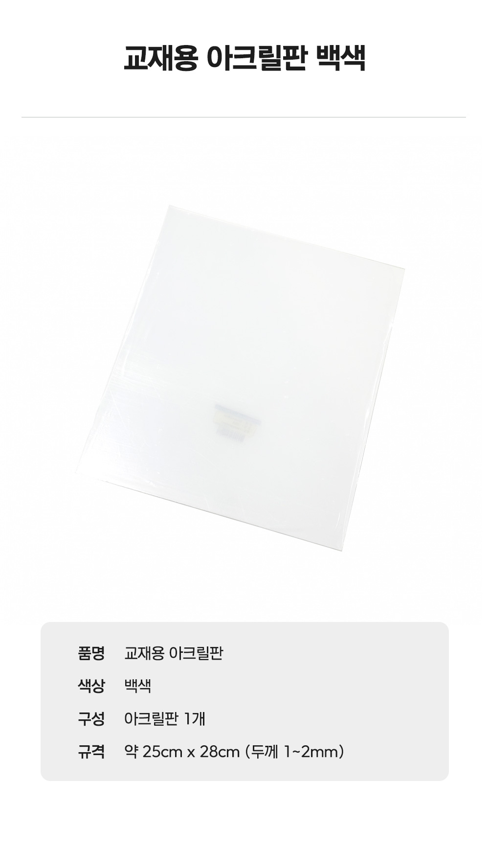 교재용 아크릴판 백색 / 250x280mm,두께1~2mm