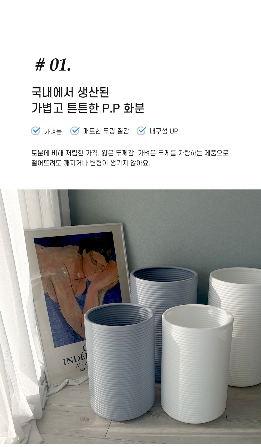유니크 하이 가로줄패턴 플라스틱 대형화분