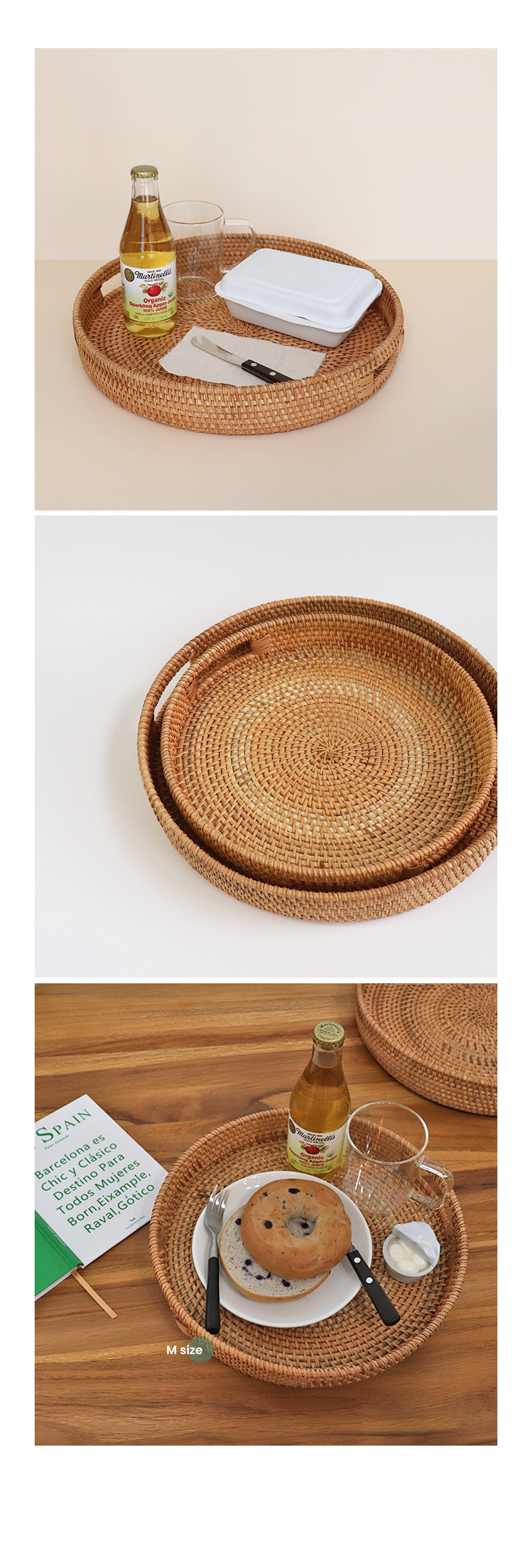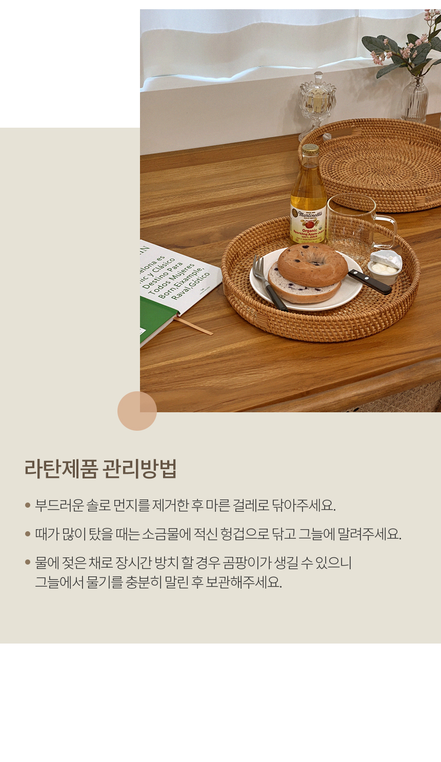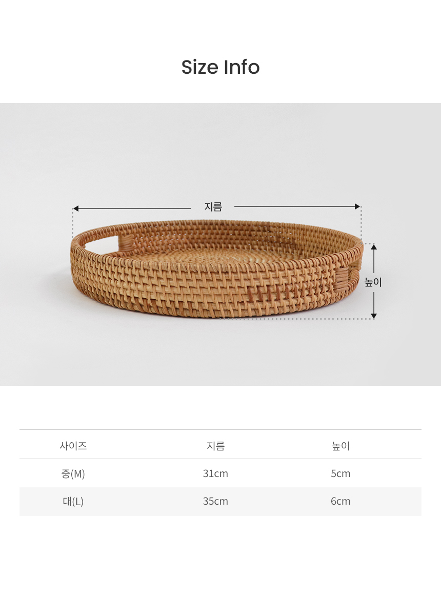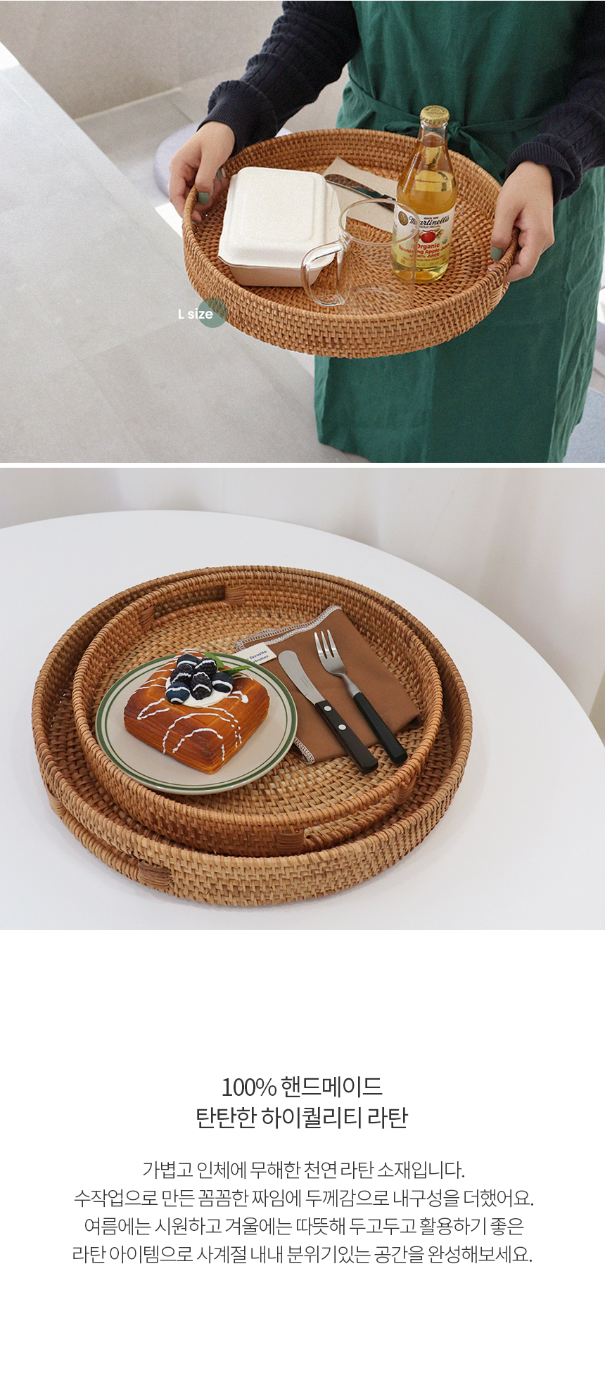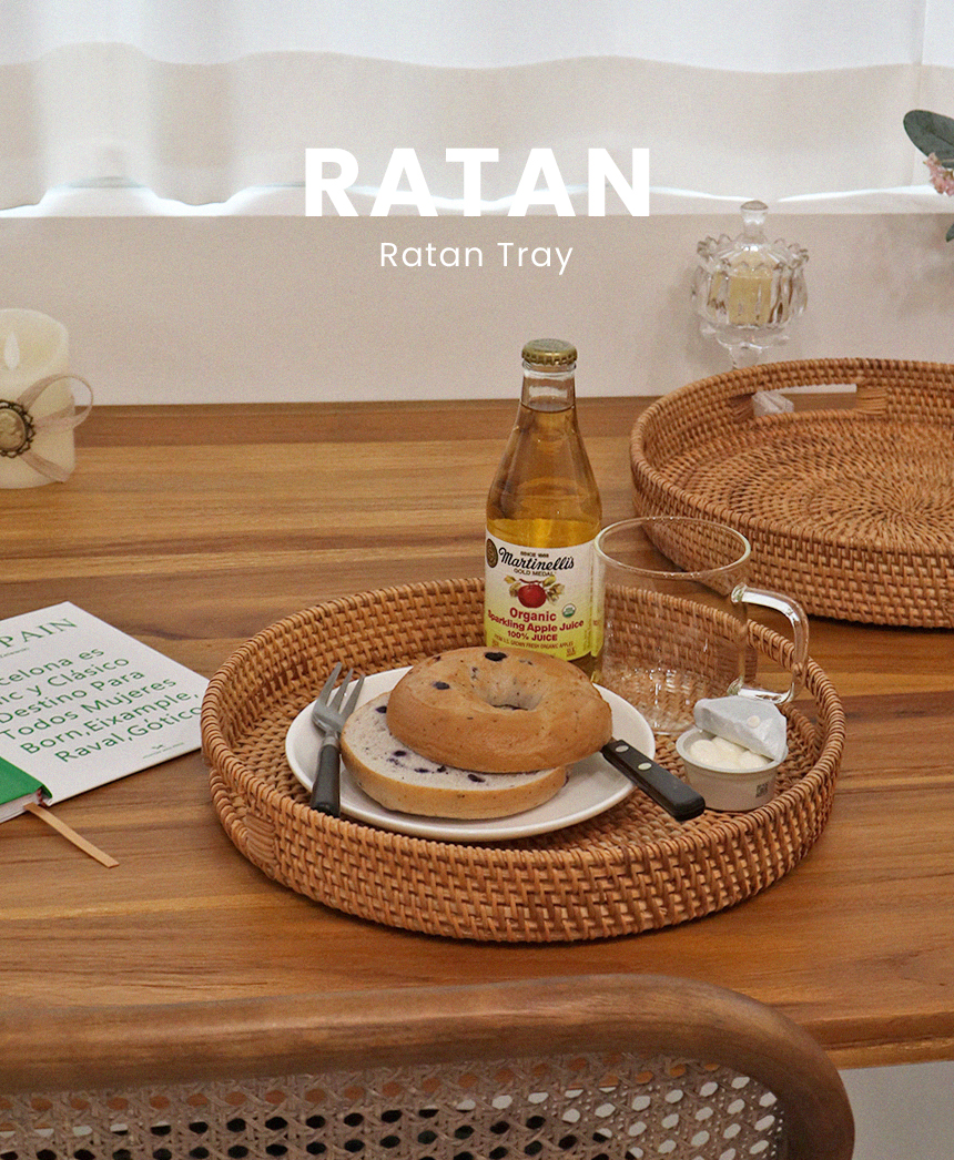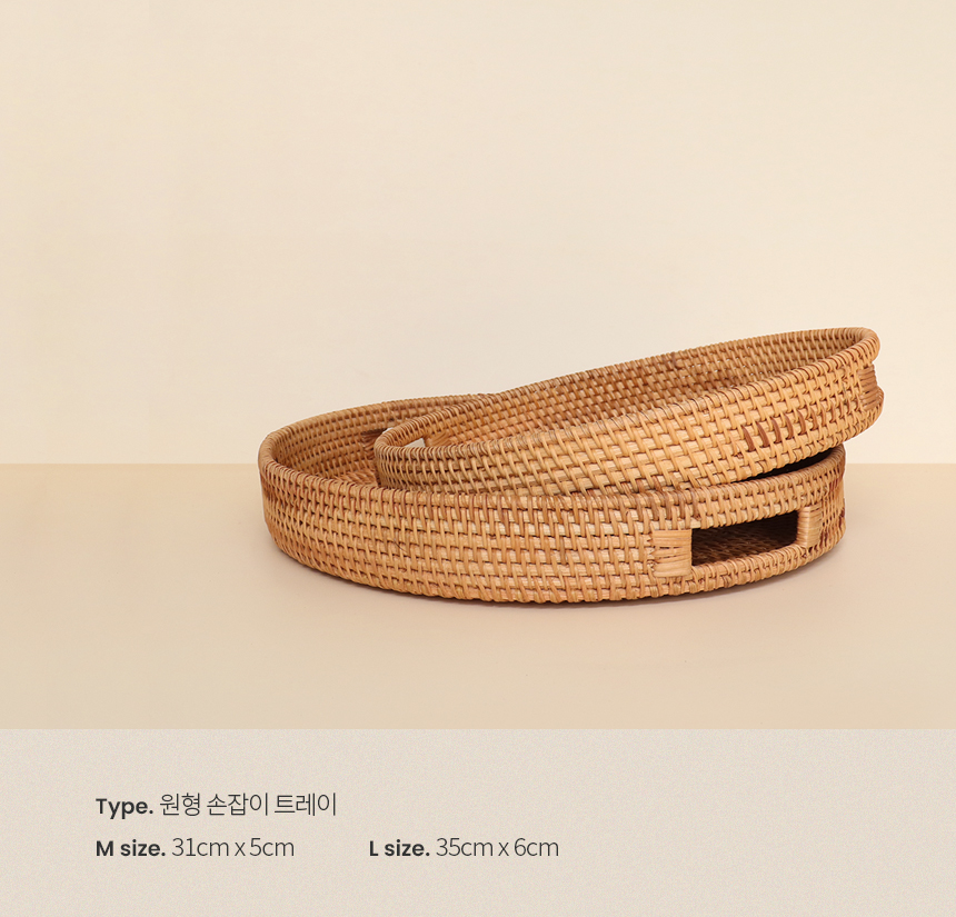 라탄 손잡이 트레이