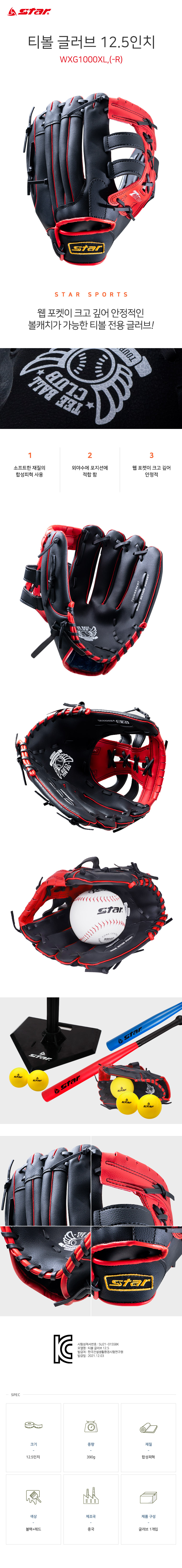 스타 티볼 오른손잡이용 글러브 대형(12.5인치) 빨강