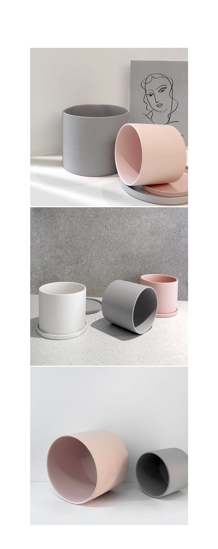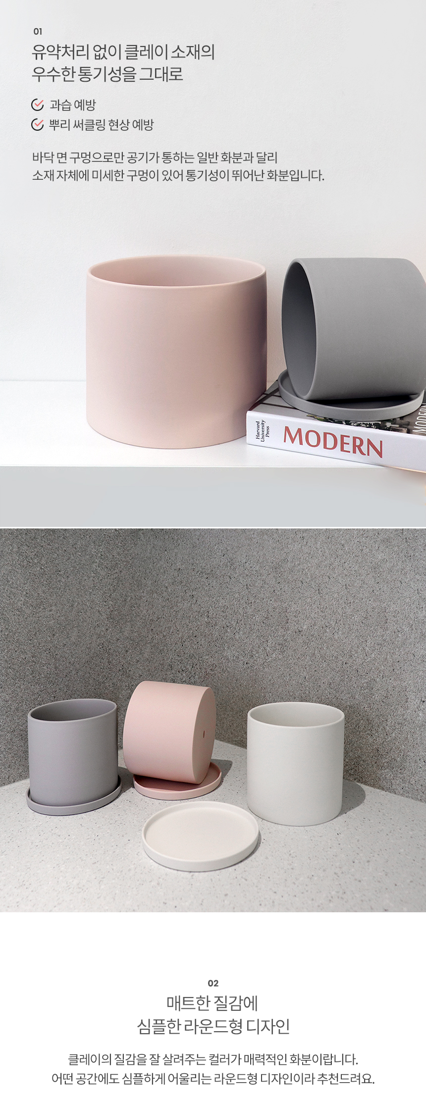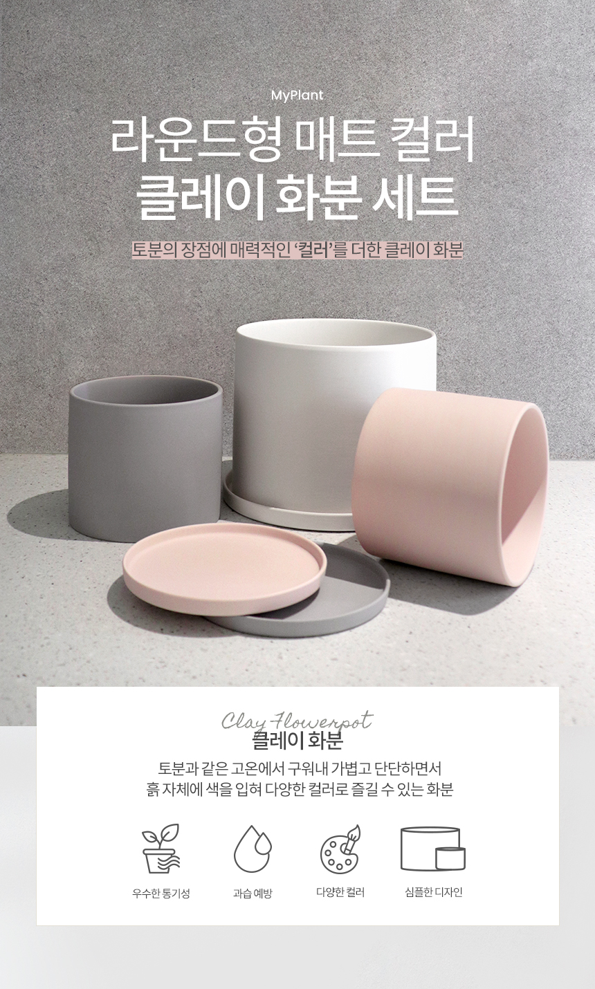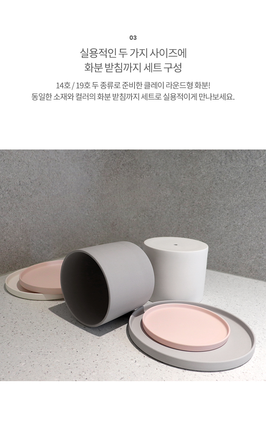 라운드 매트 컬러 클레이화분 (받침세트)