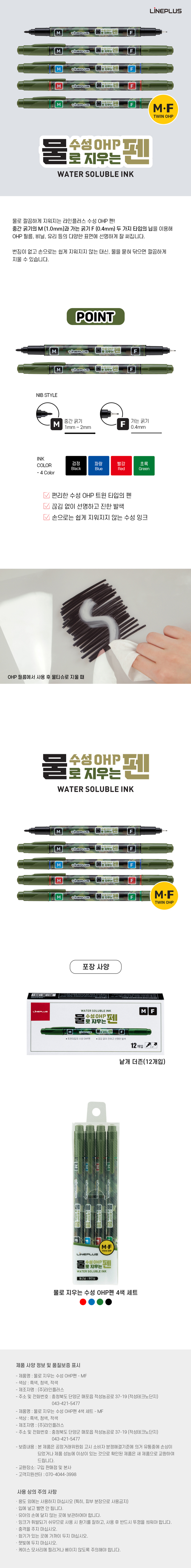 [라인플러스] 물로 지우는 수성 OHP 4색펜 MF