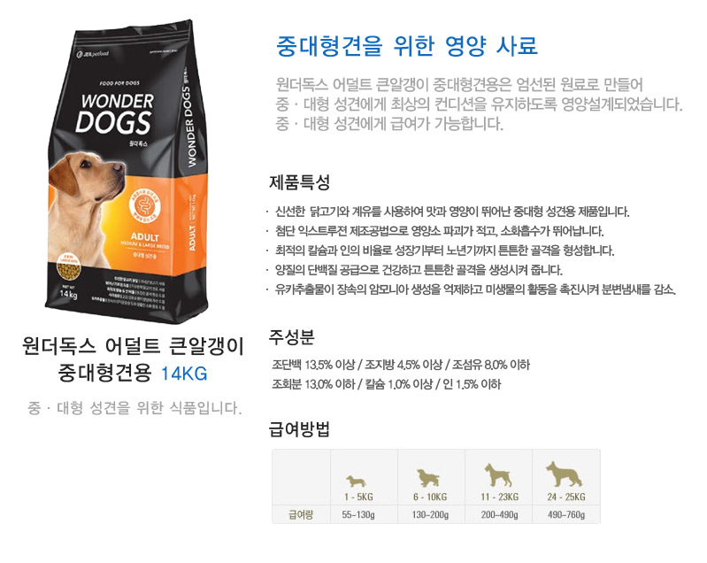 원더독스 어덜트 큰알갱이 중대형견용 14kg