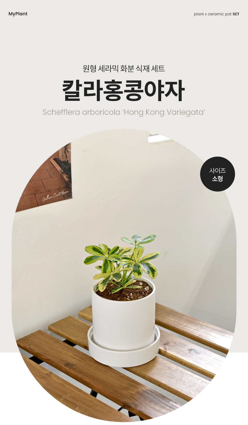 칼라홍콩야자 원형 세라믹화분 받침세트