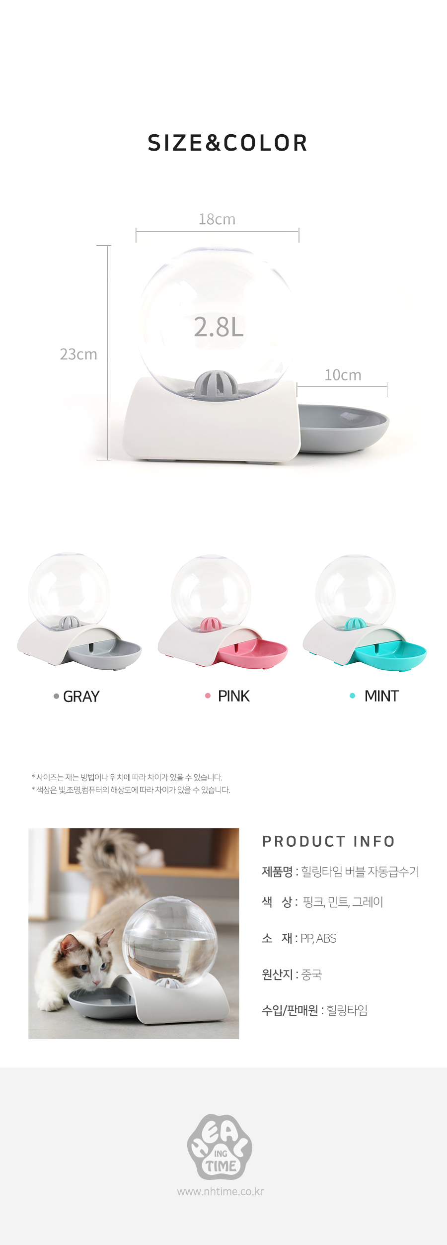 힐링타임 버블 자동급수기 2.8L