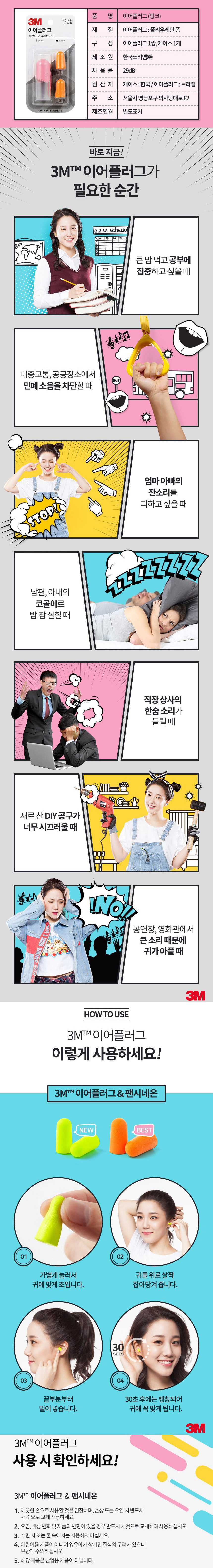 3M 휴대용귀마개 이어플러그 KE-1100 핑크 케이스+본