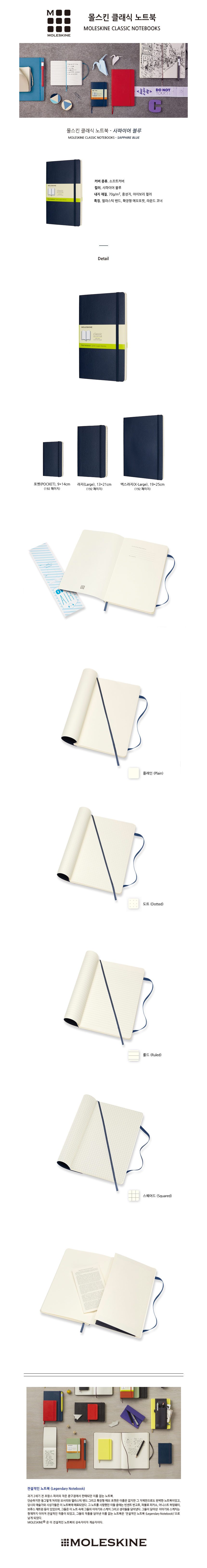 몰스킨 클래식노트 룰드 사파이어블루 소프트커버 포