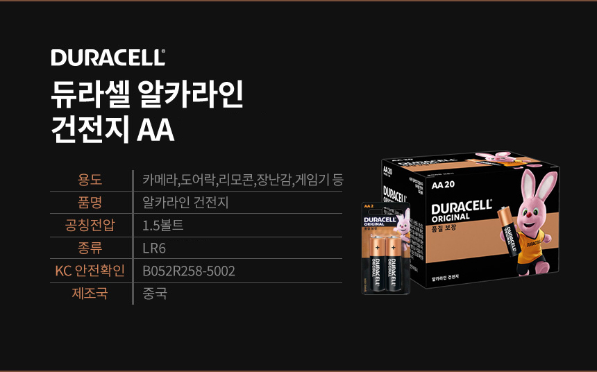 듀라셀 알카라인 스몰카드 건전지 AA 2개입