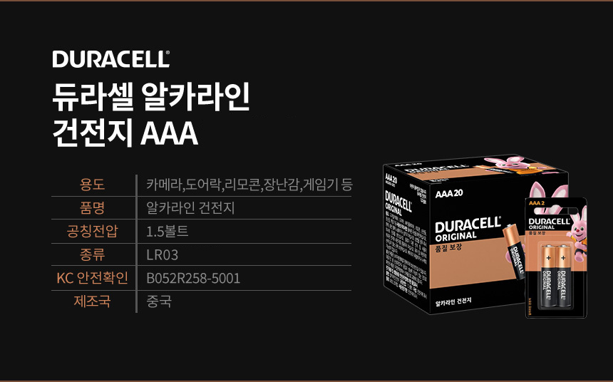 듀라셀 알카라인 스몰카드 건전지 AAA 2개입