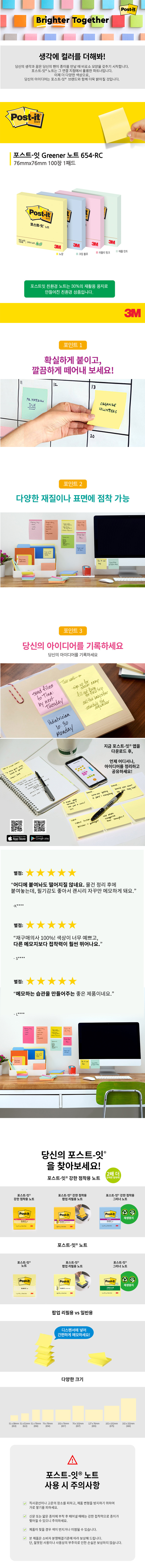 [3M] 포스트잇 654 [애플민트] / [76*76 100매]