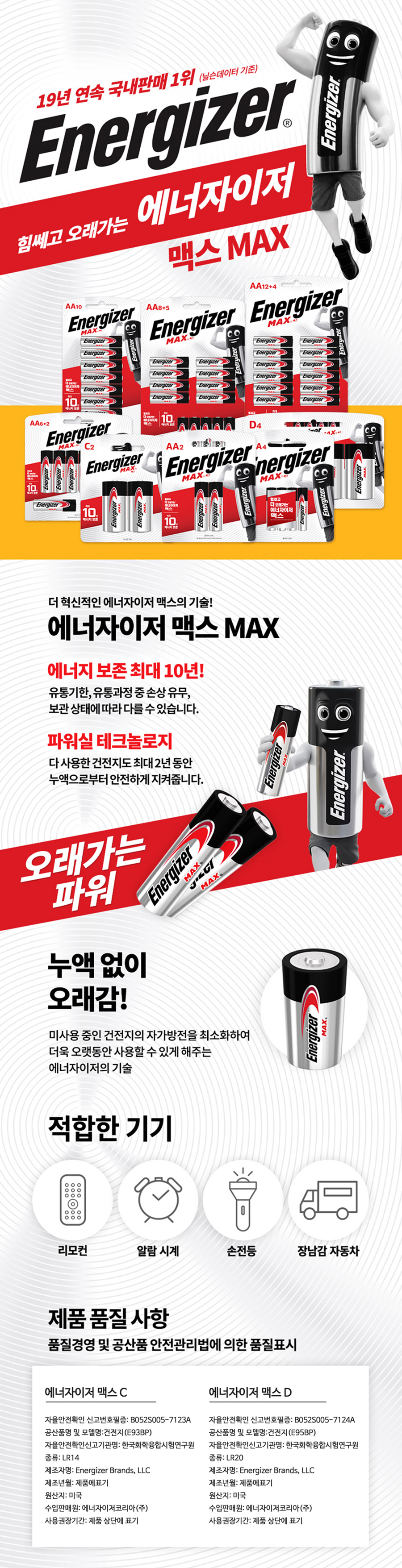 에너자이저 알카라인 건전지 맥스 중 CM LR14 1.5V 2