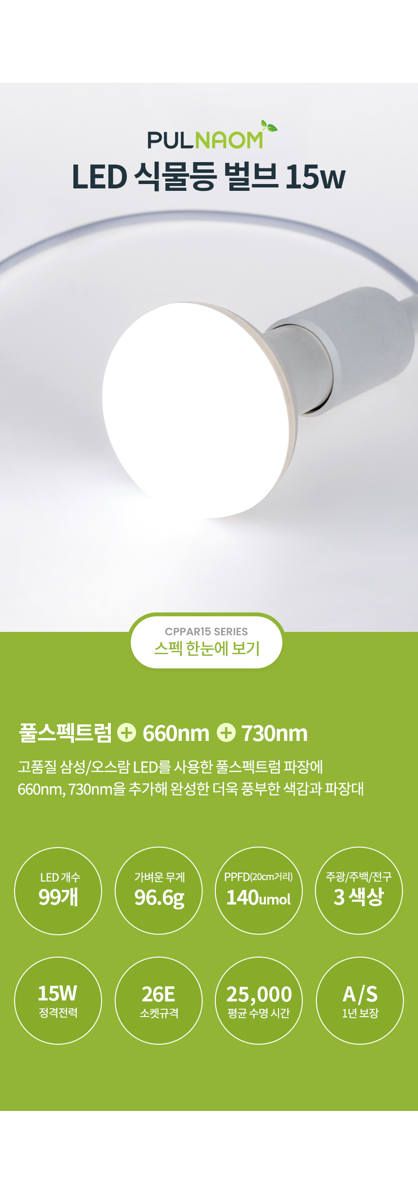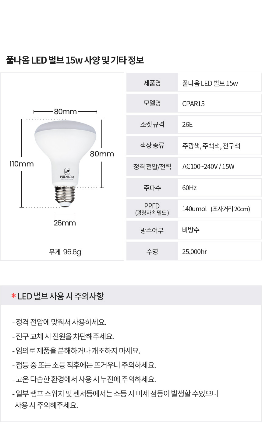풀나옴 LED 식물등 벌브 15w