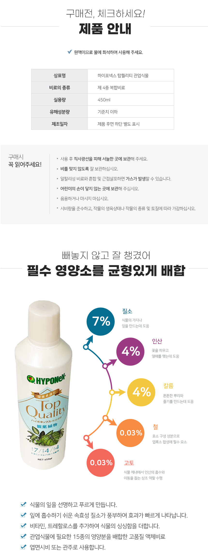 [영양제] 하이포넥스 탑퀄리티 관엽식물 450ml