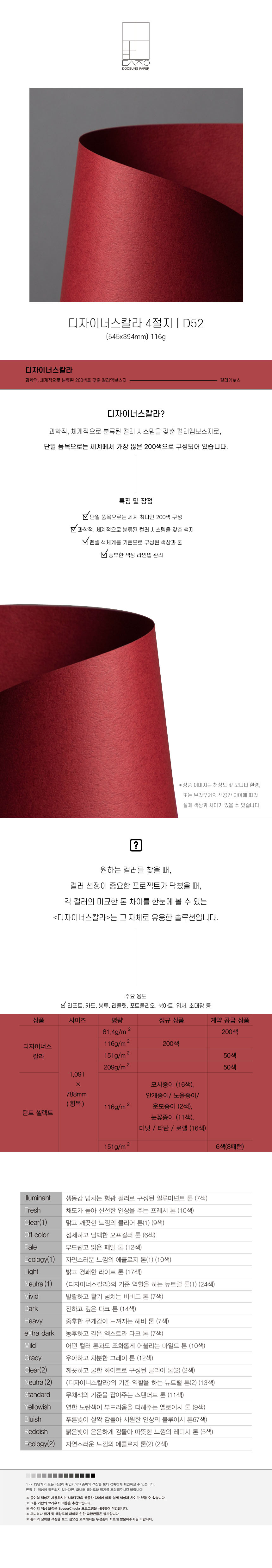 두성 디자이너스 칼라 4절 D-52 / 116g,545*394mm