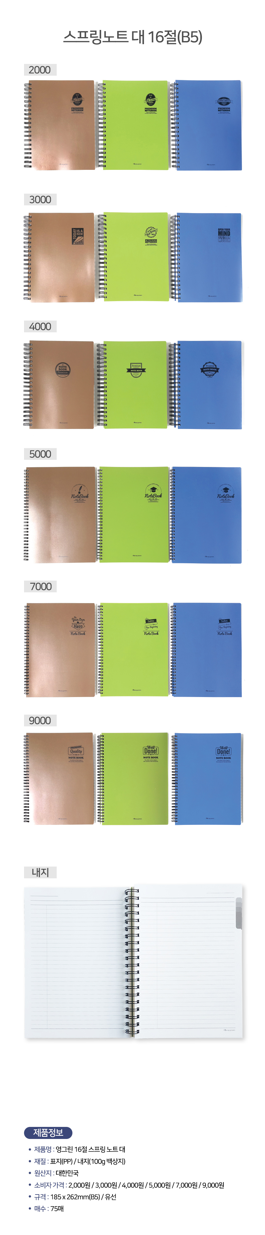 영진 4000 스프링노트 대16절(B5) / [22권 1박스]