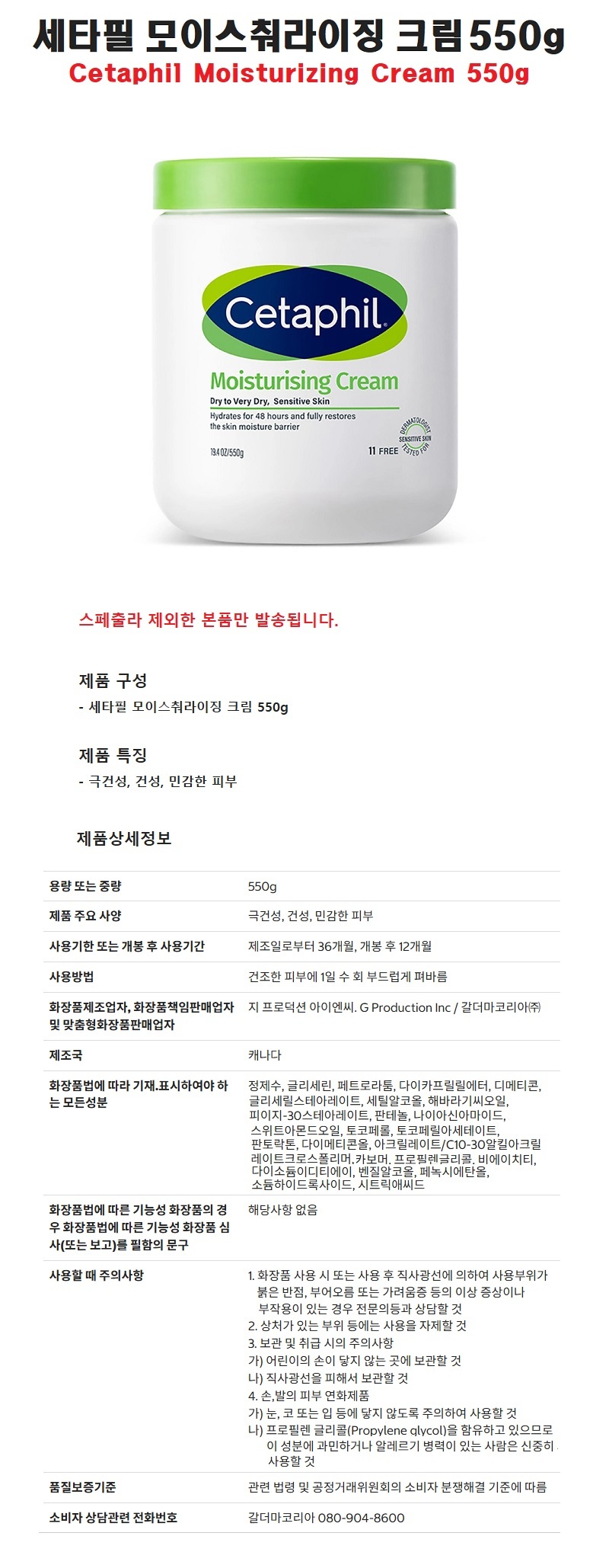세타필 모이스춰라이징 크림550g