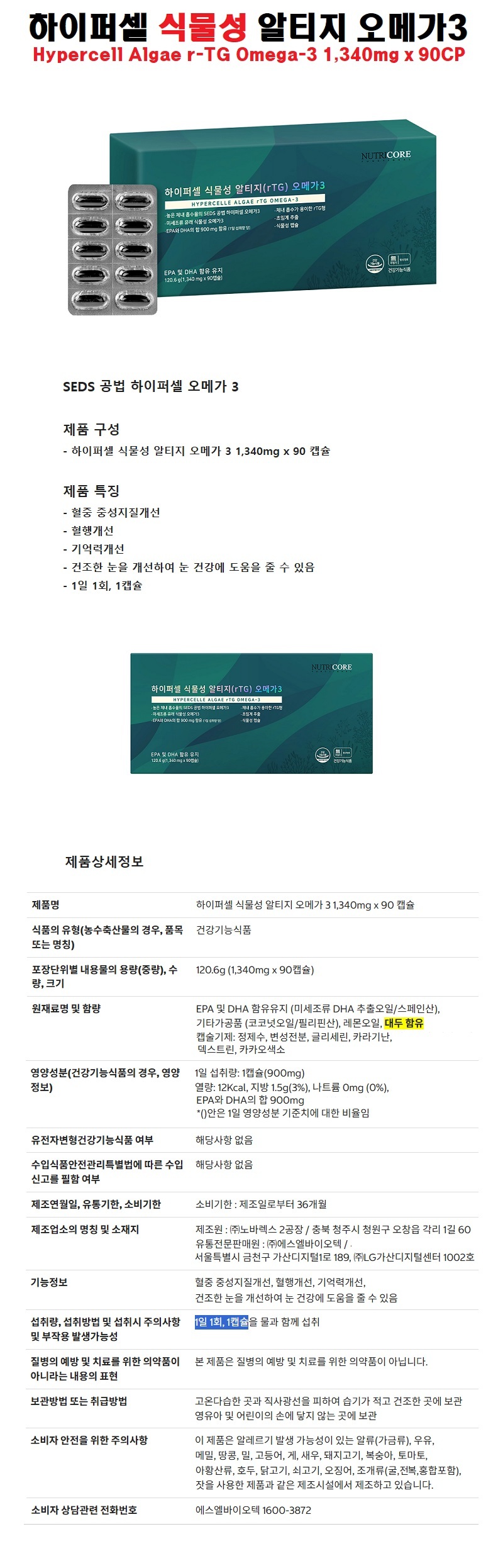 하이퍼셀 식물성 알티지 오메가3 1,340mg x 90 캡슐